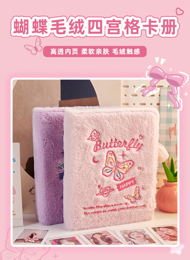 | Número de artículo | Libro de cartas de cuatro cuadrados de felpa de mariposa de 3 pulgadas |