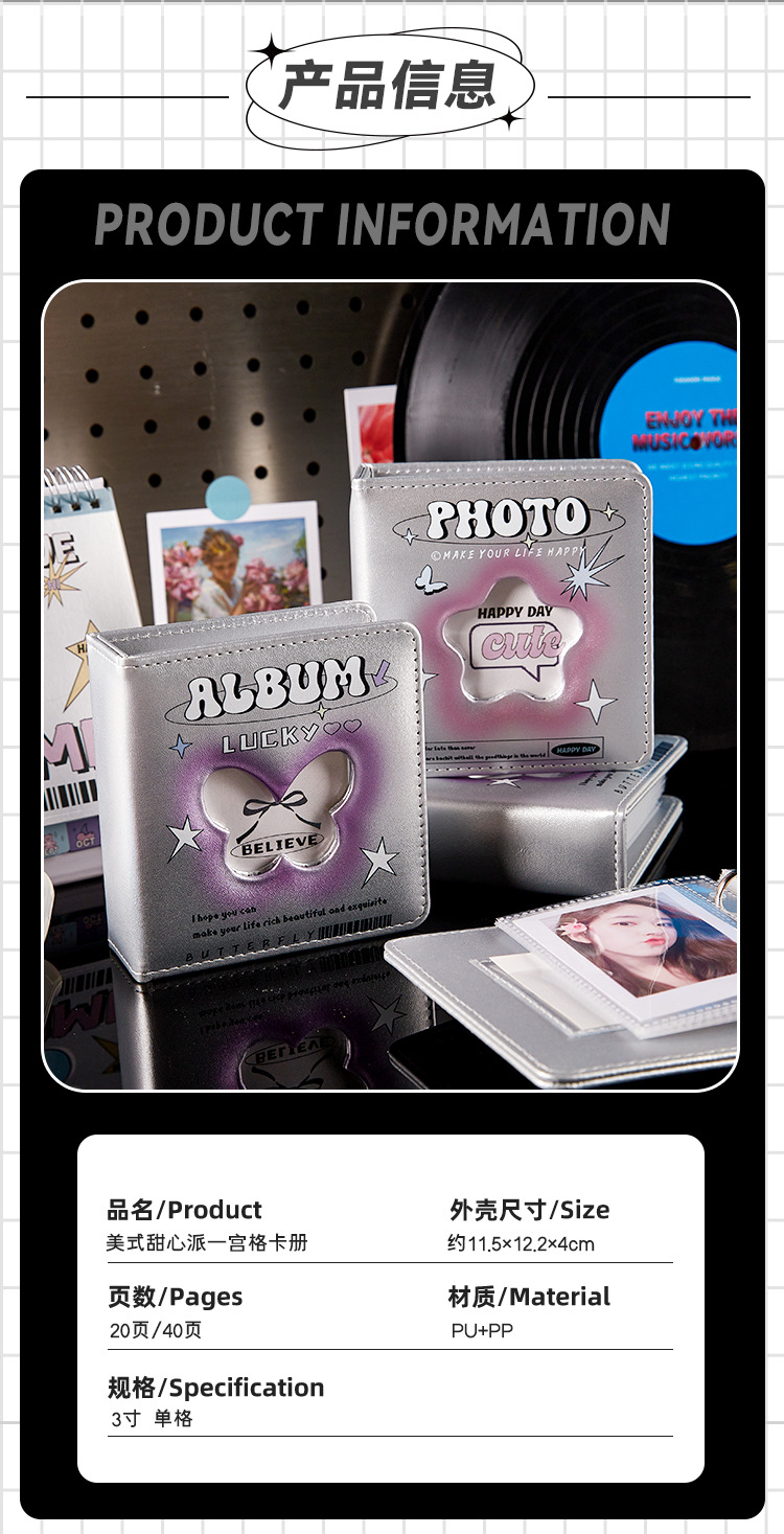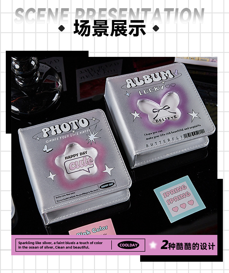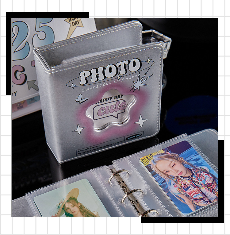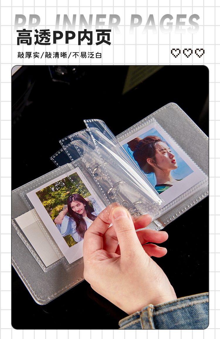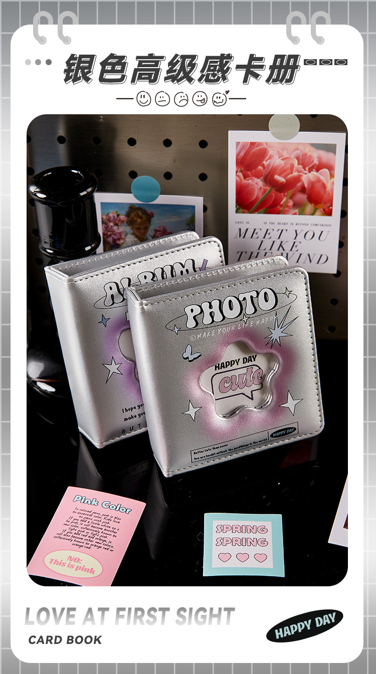 Álbum de tarjetas de pu de cuadrícula de un palacio Álbum de fotos Polaroid a juego simple de estilo ins Álbum de almacenamiento de tarjetas pequeñas de ídolos de alto valor