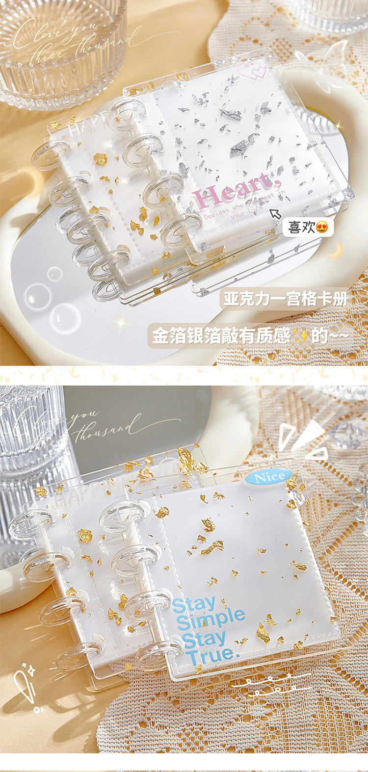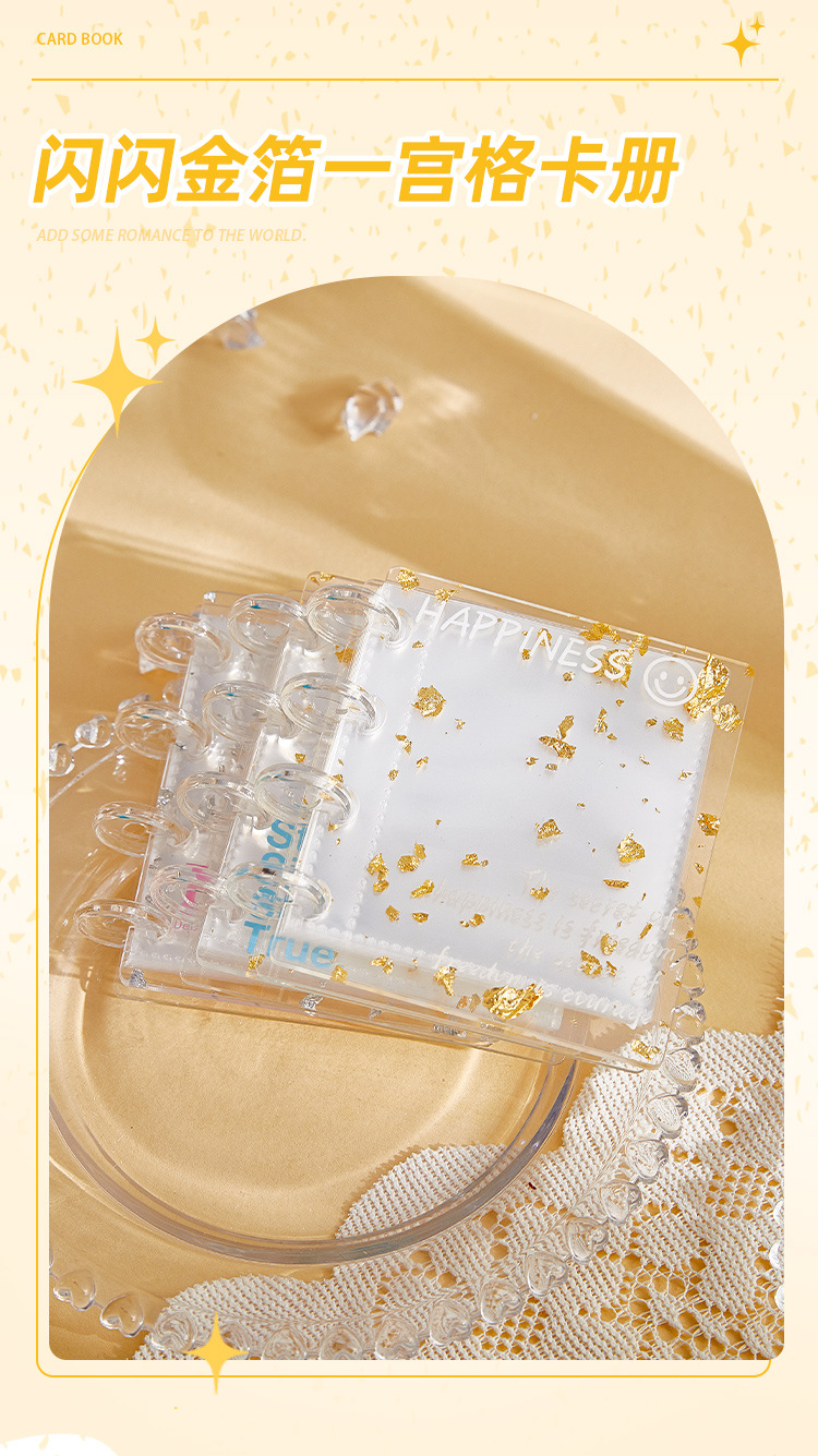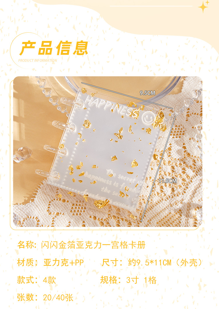 | Número de artículo | Libro de tarjetas de acrílico de hoja de oro brillante |