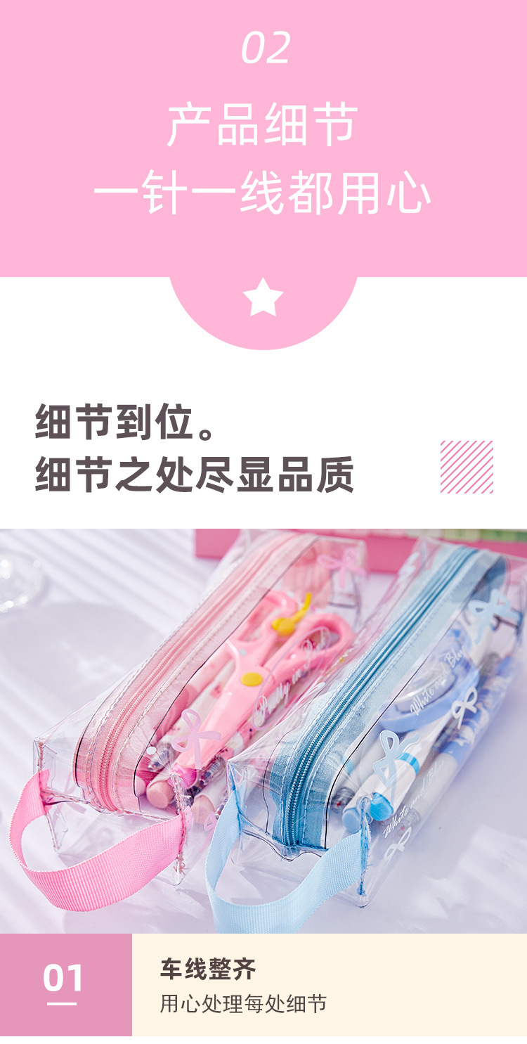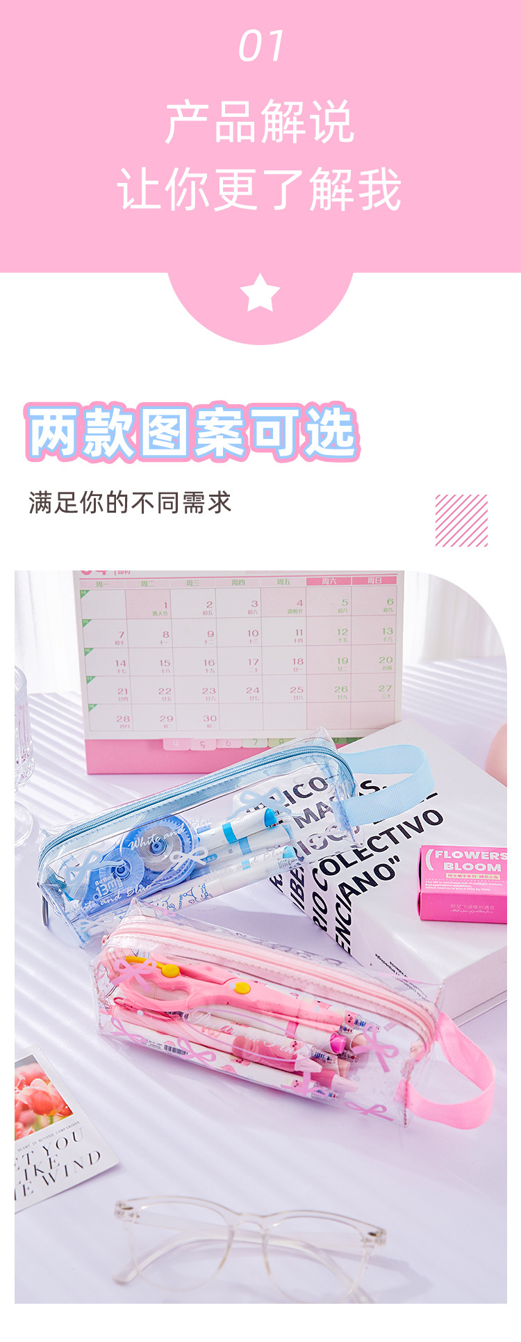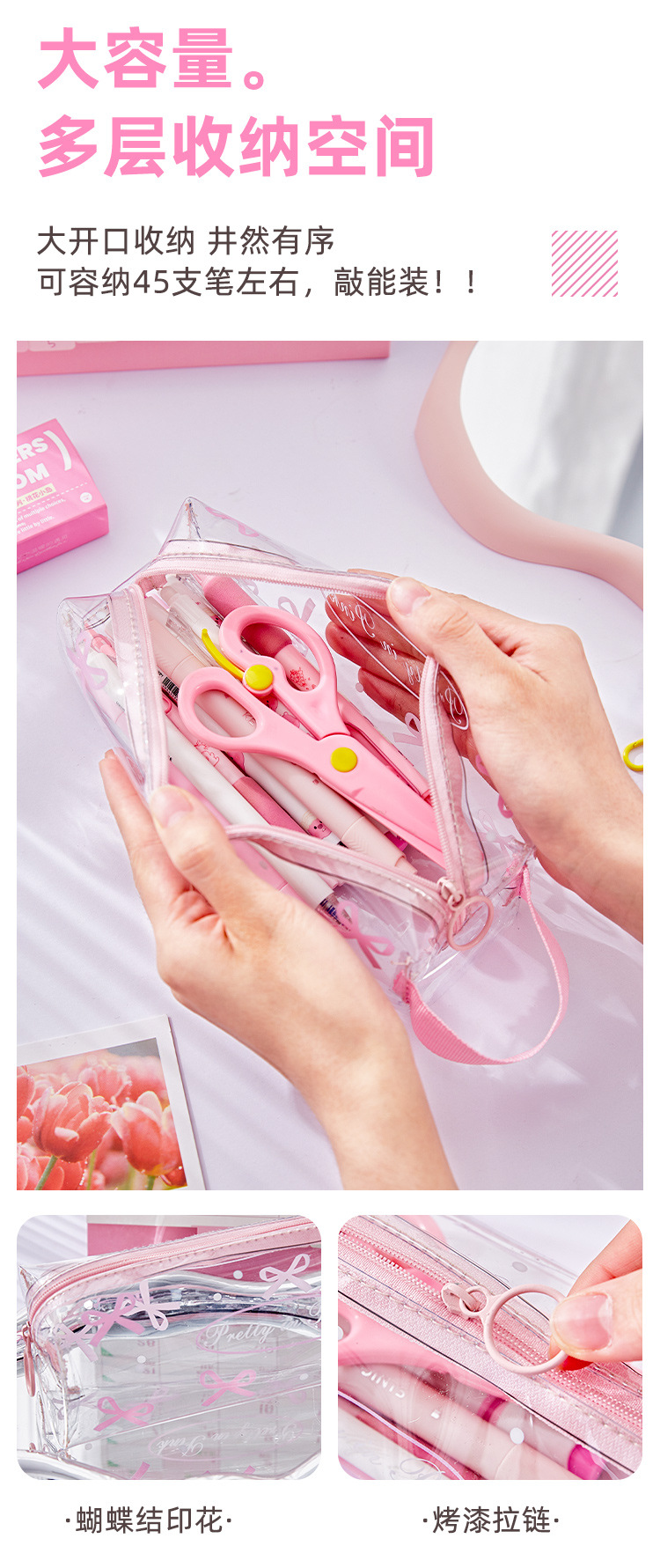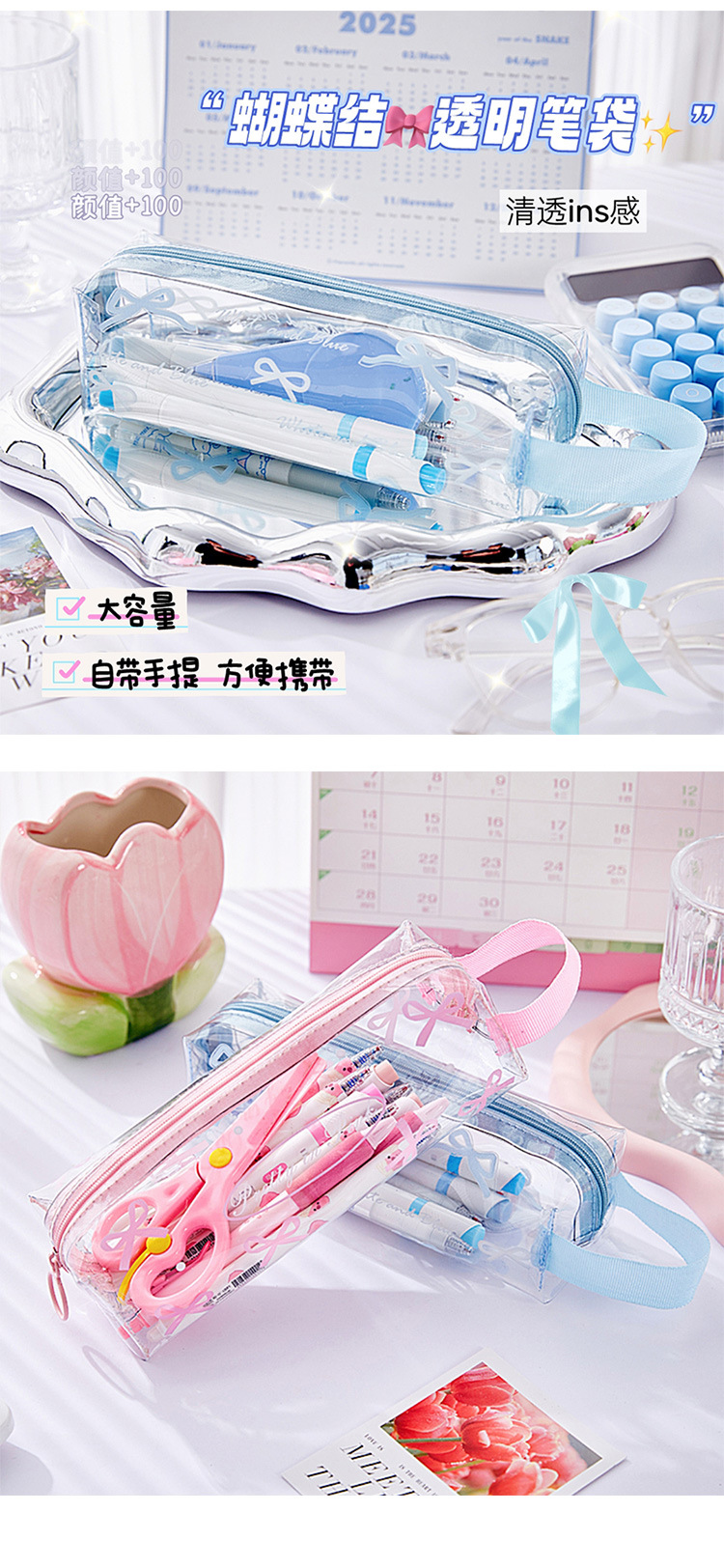 Bolsa de lápices transparente con lazo de alto valor, estilo ins, bolsa de papelería para estudiantes de gran capacidad, nueva caja de lápices impermeable portátil
