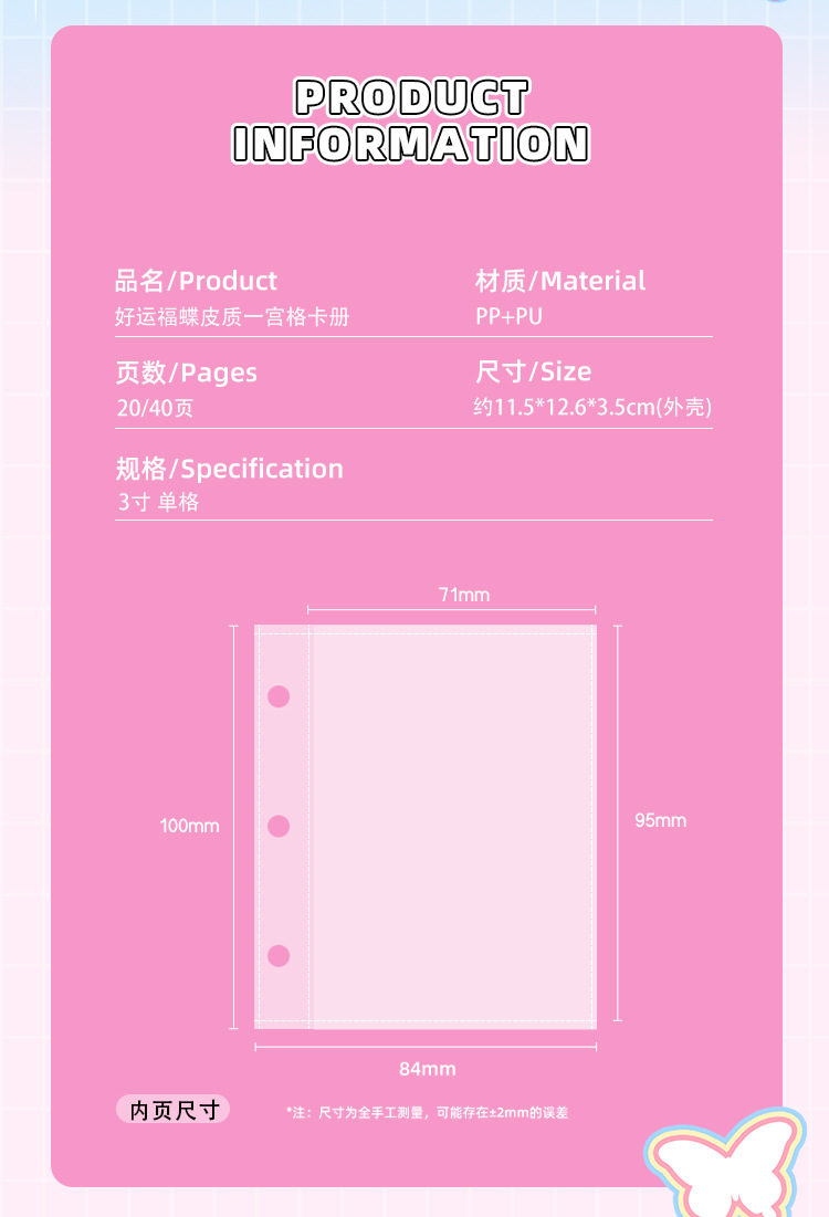 | Número de artículo | Libro de tarjetas de cuero de mariposa de buena suerte |