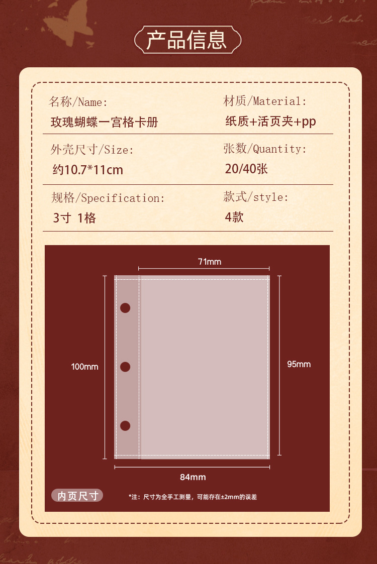 | Número de artículo | Libro de tarjetas de papel de mariposa rosa |