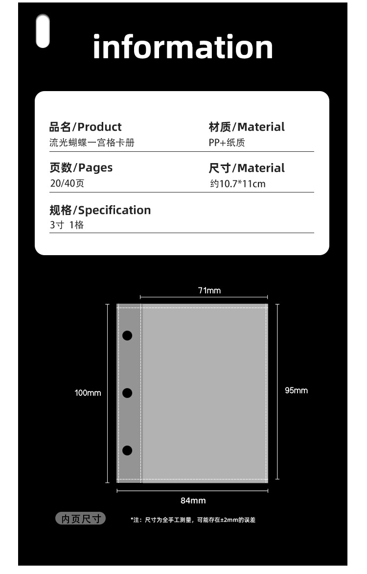 Mini mariposa de alto valor, álbum de tarjeta de cuadrícula Idoo portátil de 3 pulgadas, álbum de almacenamiento de tarjeta pequeña, álbum de fotos Polaroid