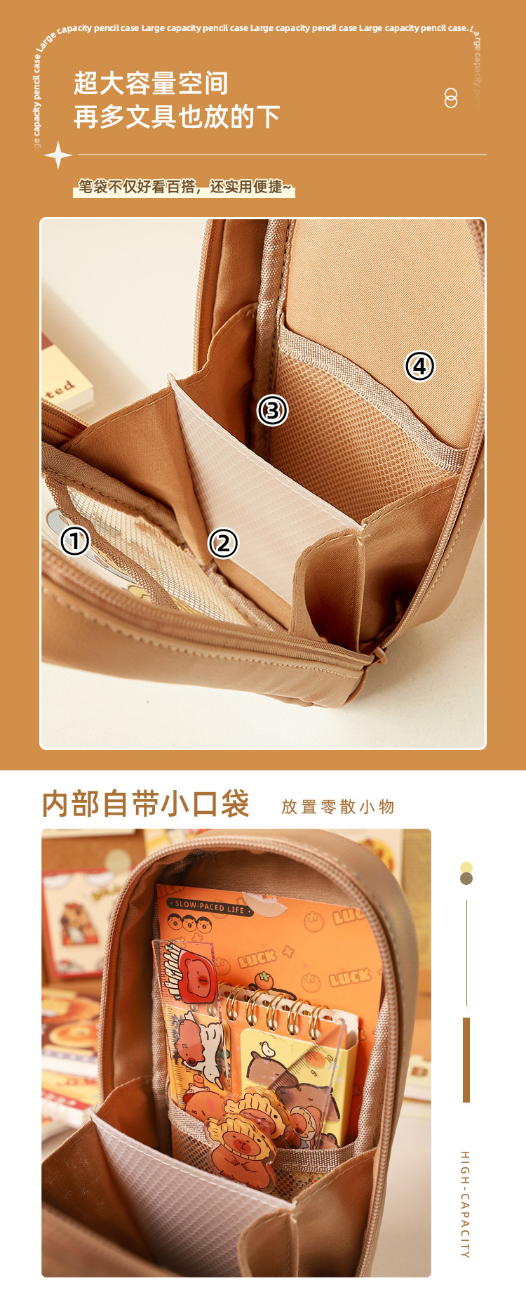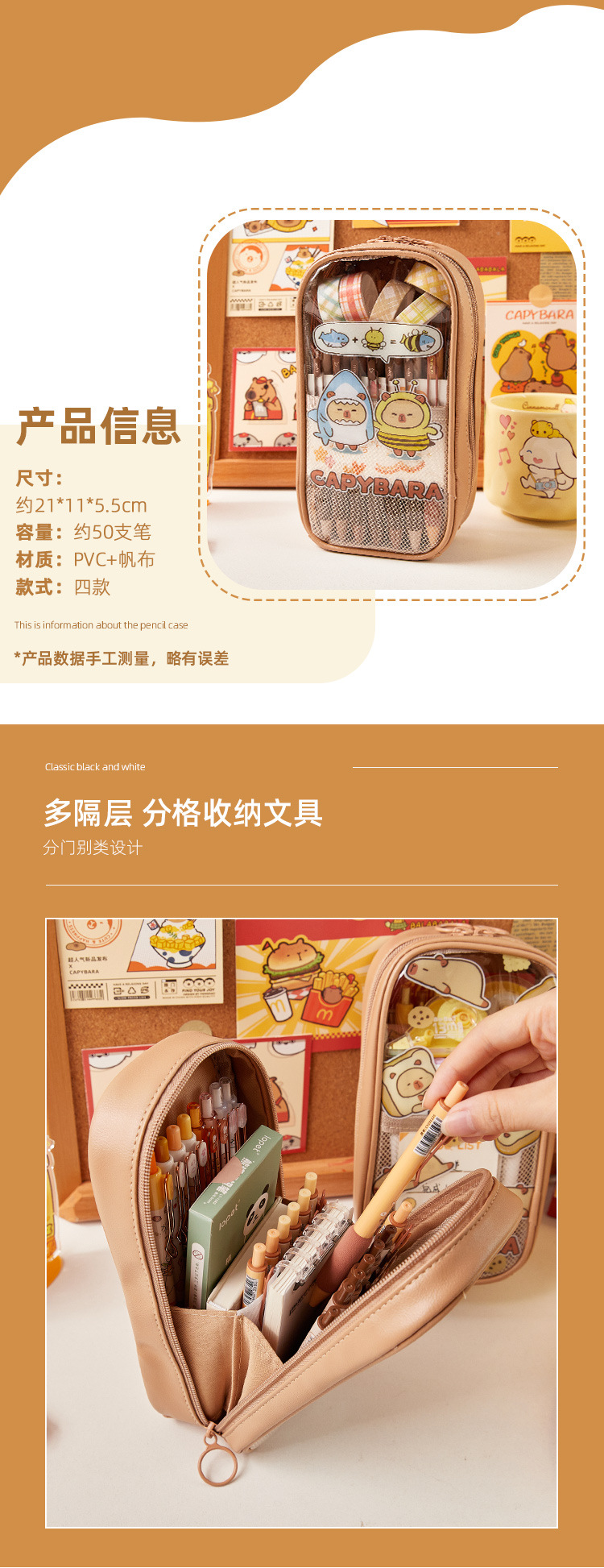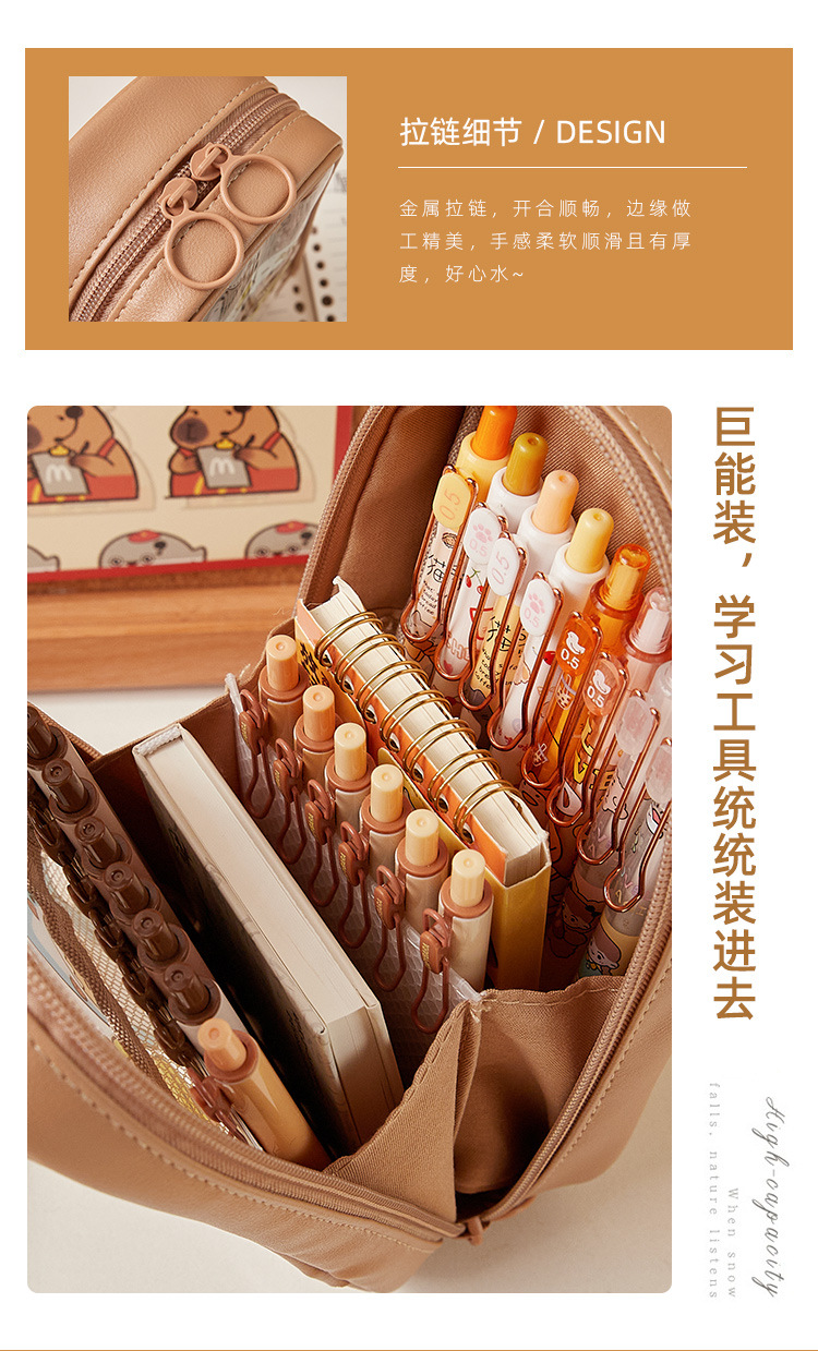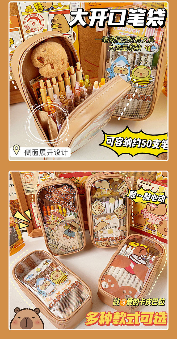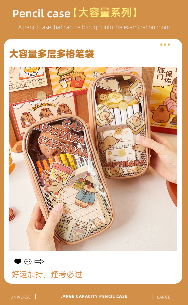 Kapibala Estuche para lápices transparente de gran capacidad Estuche de papelería resistente al agua y duradero para estudiantes de escuela primaria Estuche para lápices lindo de varias capas