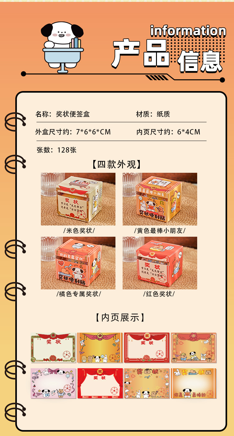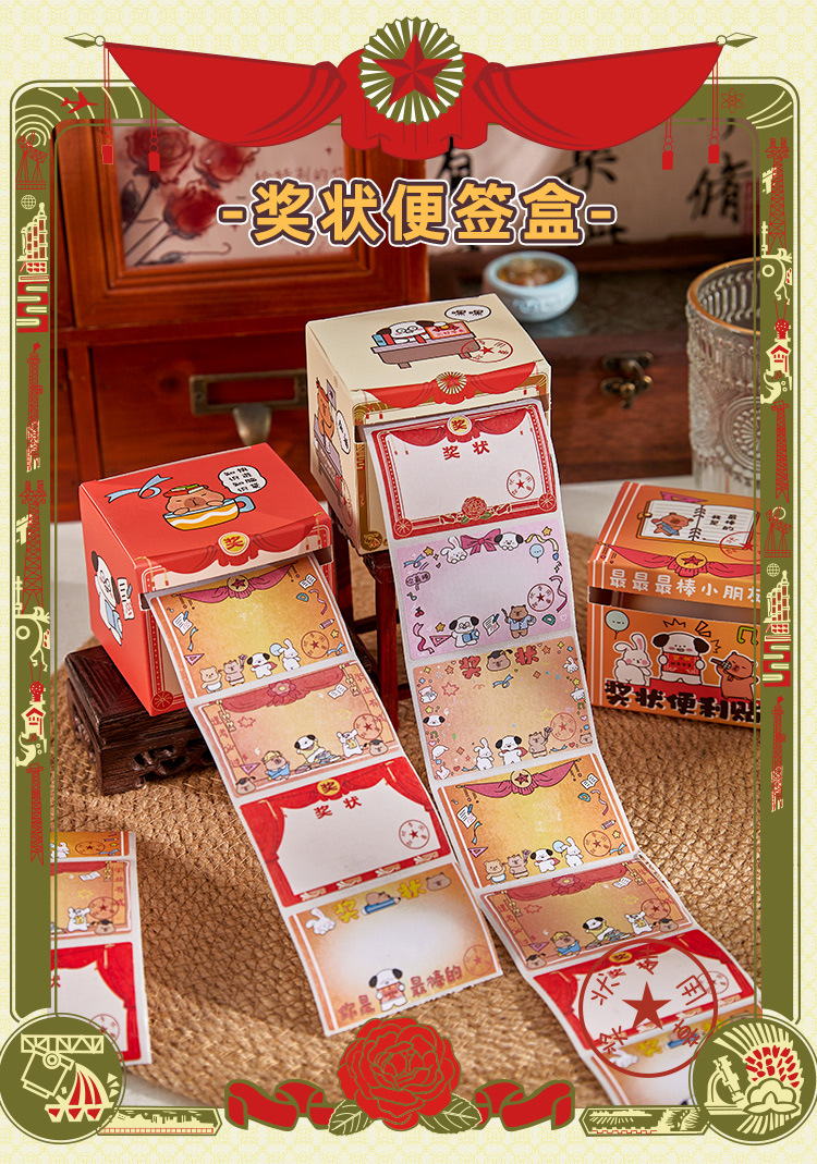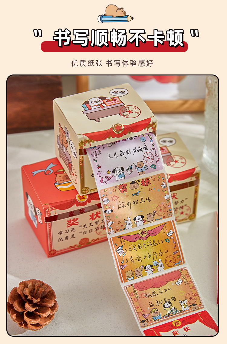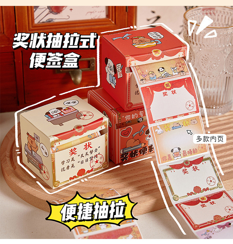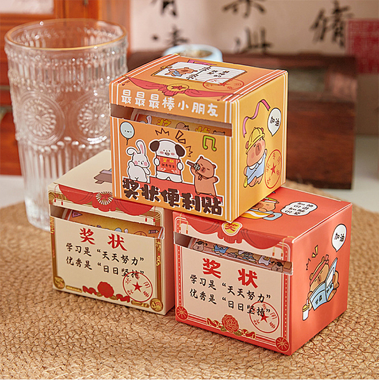 2025 nuevo certificado de mérito caja de notas adhesivas adhesivas adhesivas lindas, creativas y desgarrables, divertidas pegatinas de mensajes de alto valor