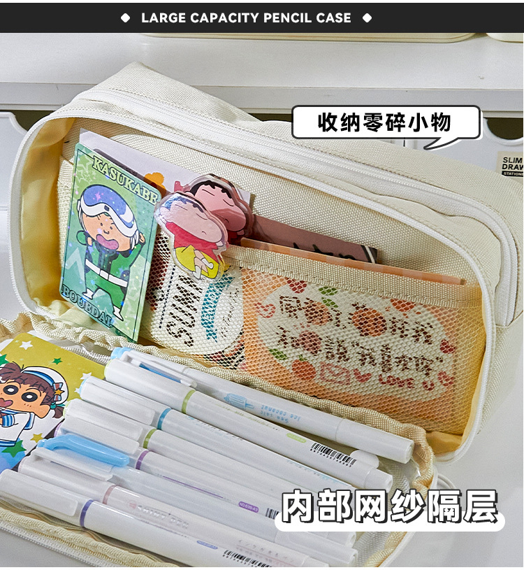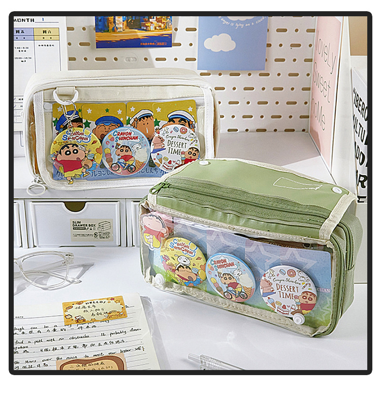 | Colores | Blanco [Bolsa de lápices para el dolor de gran capacidad],Negro [Bolsa de lápices para el dolor de gran capacidad],Insignia de bolsa de lápices blanca * 3,Insignia de portalápices negro * 3,Clip colgante de insignia de bolsa de lápices blanco,Clip colgante de insignia de bolsa de lápices negro |