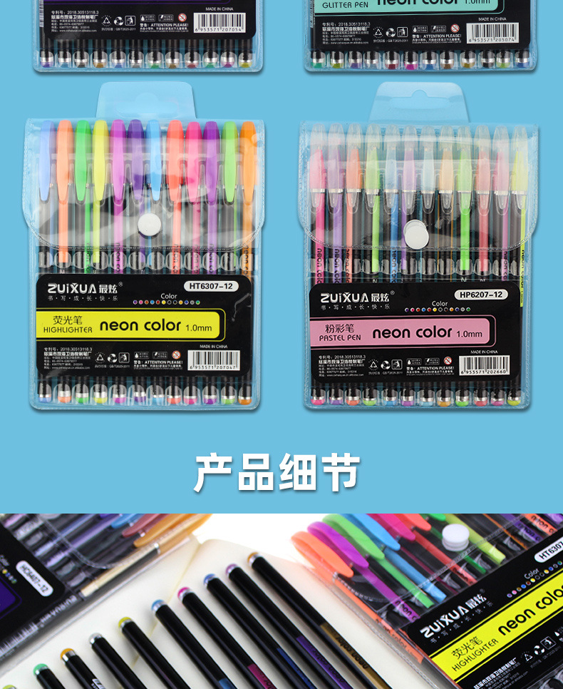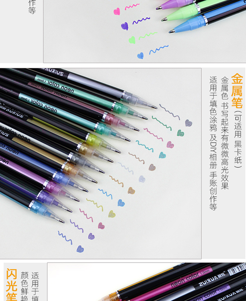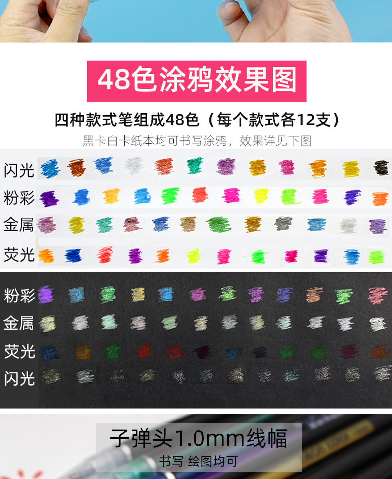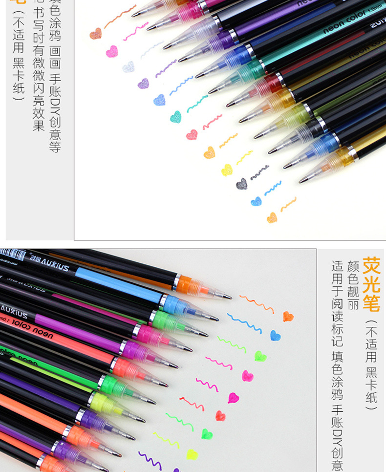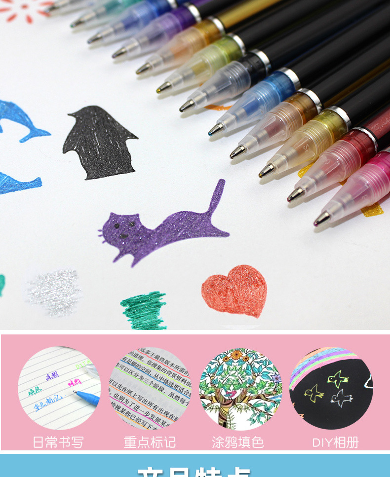 | Color de la pluma | 12 bolígrafos metálicos, 12 bolígrafos flash |