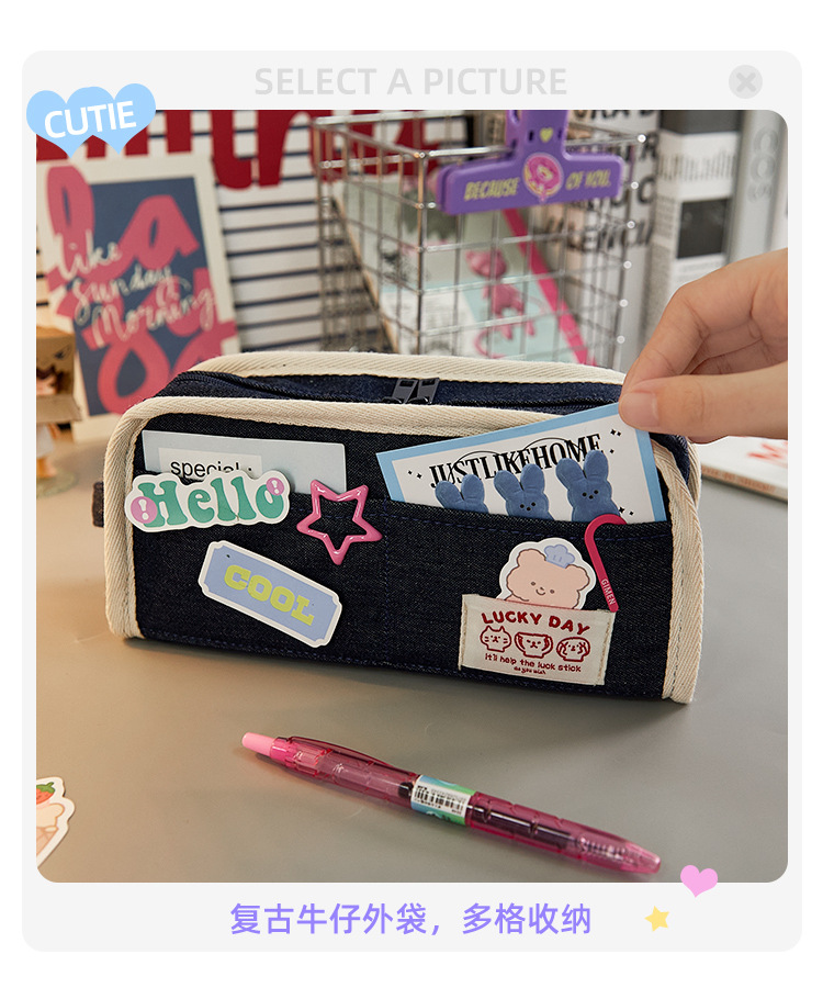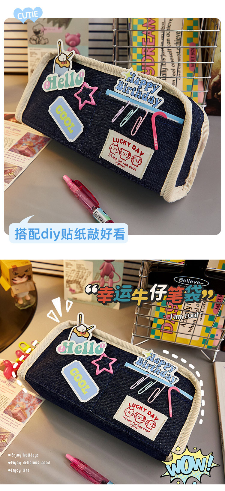 | Colores | Cute Cat Cowboy Pen Bag [Azul claro],Bolso de la pluma del vaquero del gatito de la suerte,【Bolsa de lápices de la tribu vaquera】 Azul claro,【Bolsa de lápices de la tribu vaquera】 Azul oscuro,Lindo gato [pegatinas bordadas con estuche de lápices azul claro] |