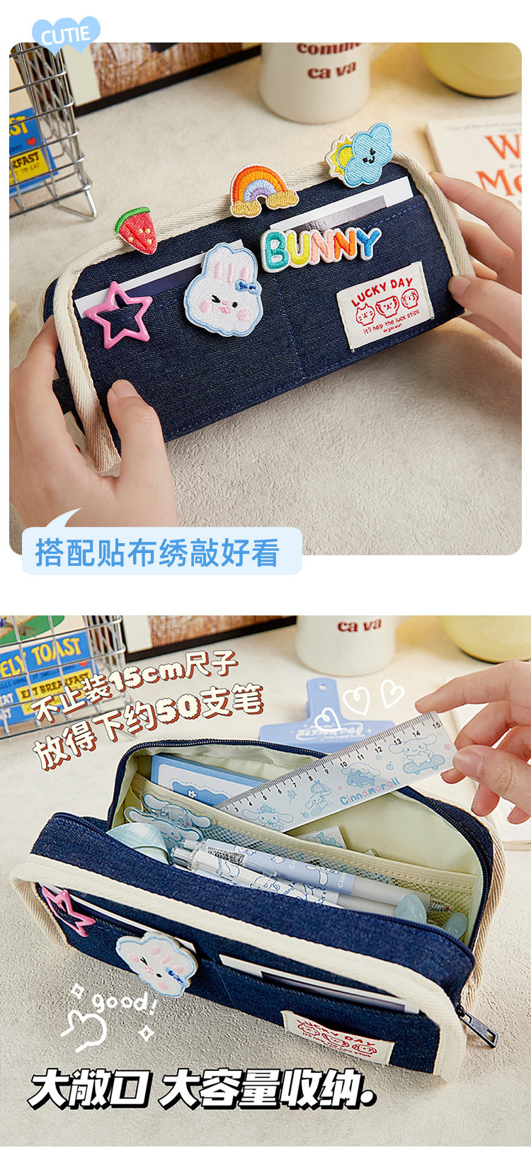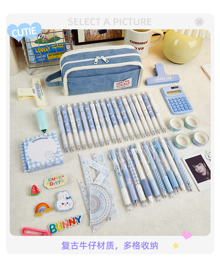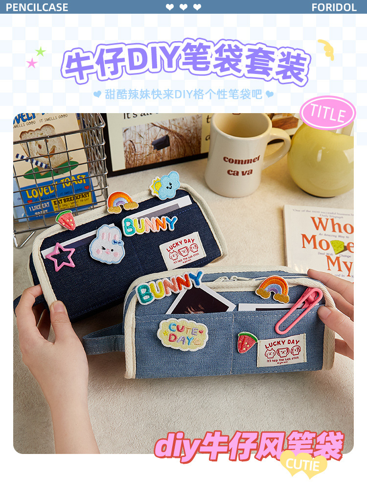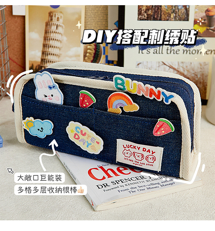 Diseño simple sentido Denim estilo lápiz bolsa nicho de gran capacidad Junior High School Girl High-looking 2024 nuevo lápiz caso