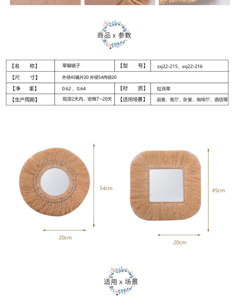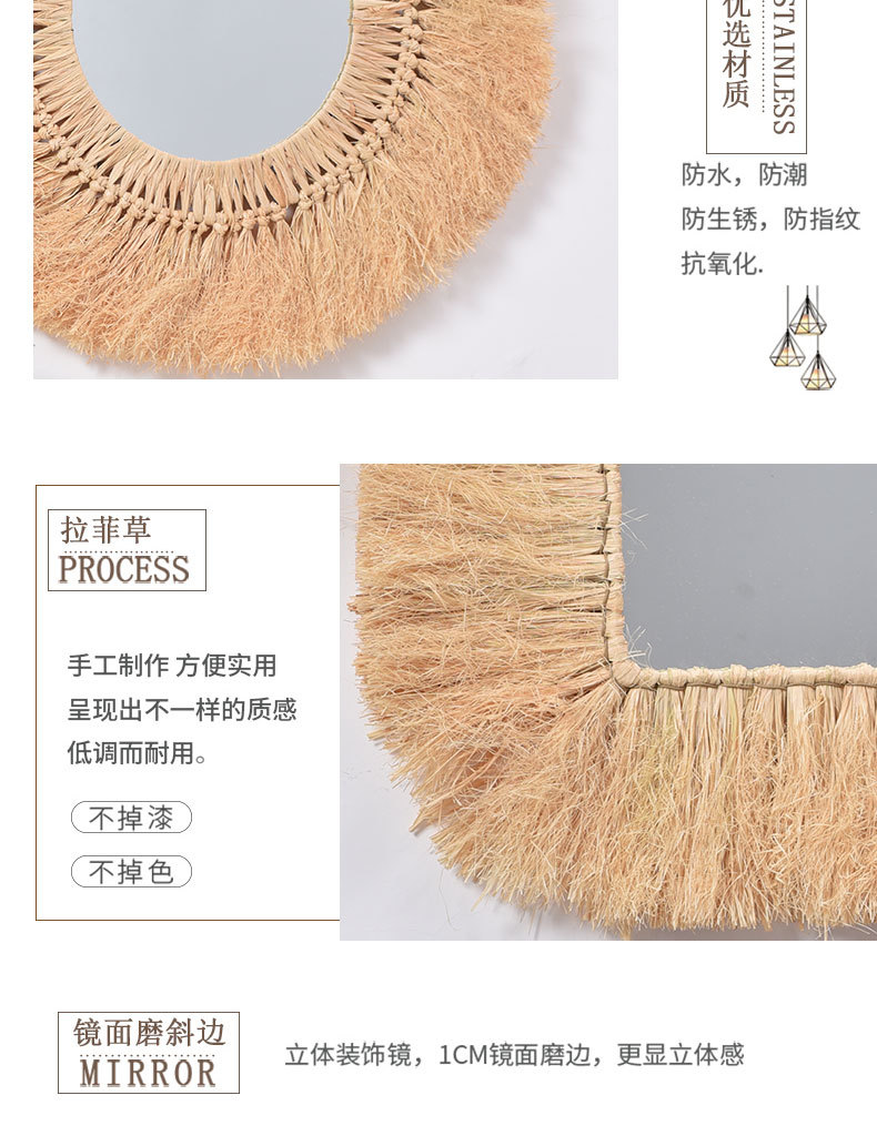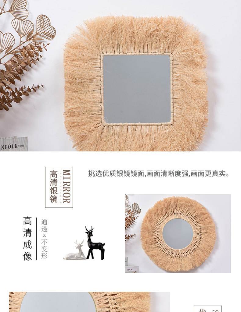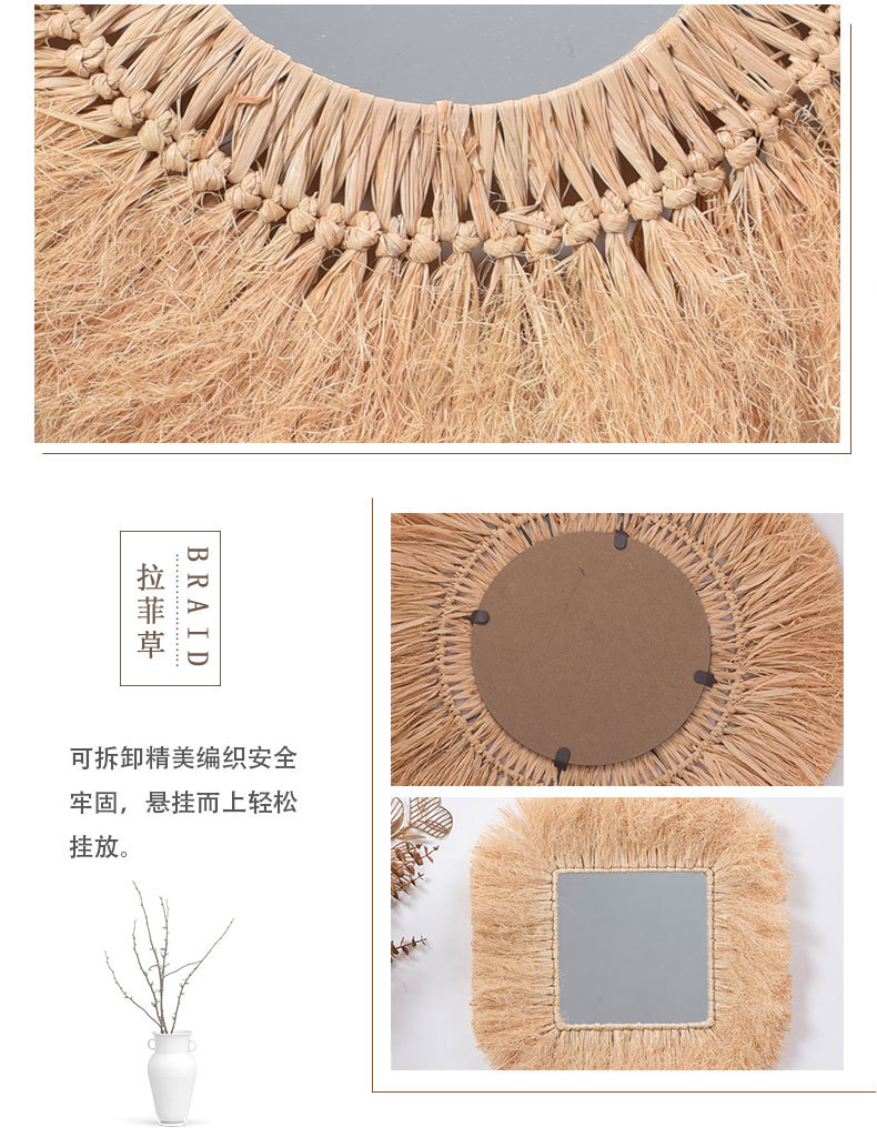 Rafia espejo tejido a mano B & B sala de estar colgante de pared espejo bar tienda de ropa para niños Fotografía Decoración Accesorios colgante