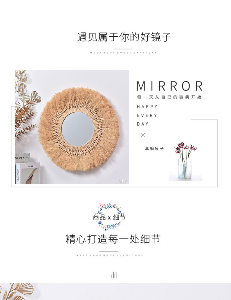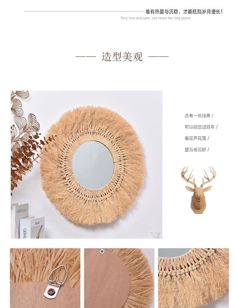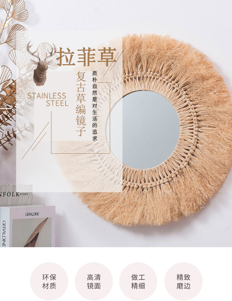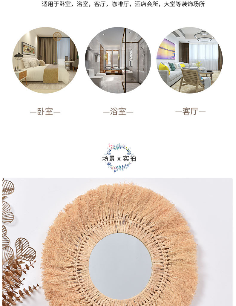 Espejo decorativo de pared de tejido de ratán transfronterizo personalizado, espejo colgante de decoración de pared de fondo para el hogar de B & B, espejo de maquillaje creativo de dibujos animados