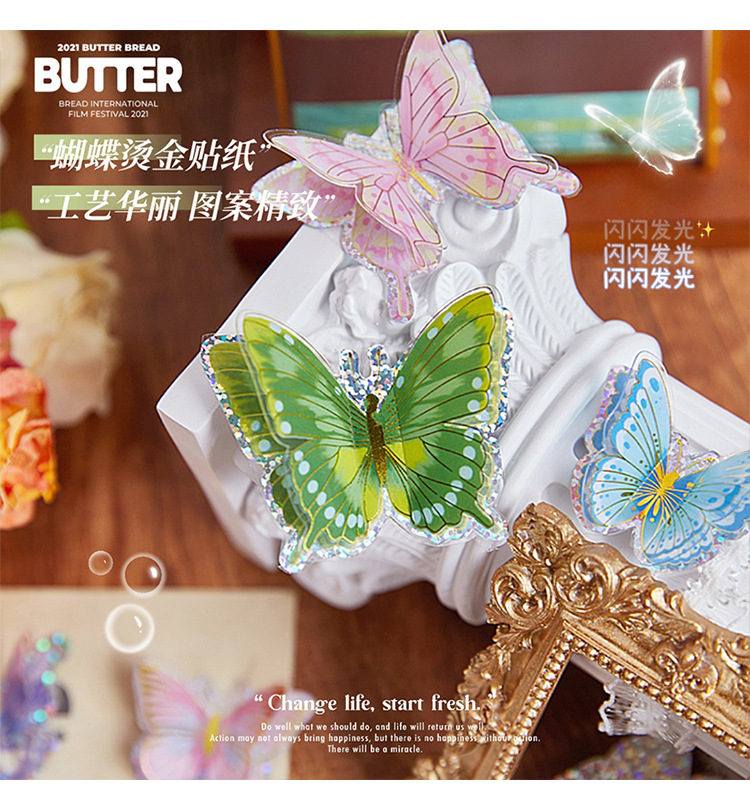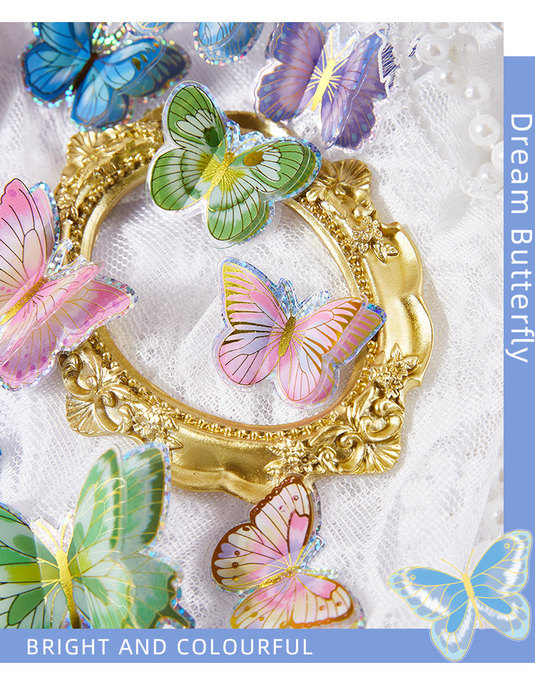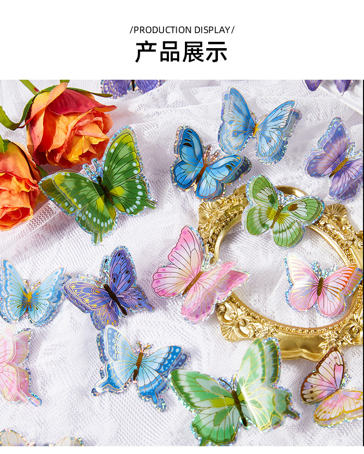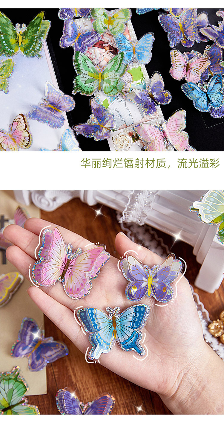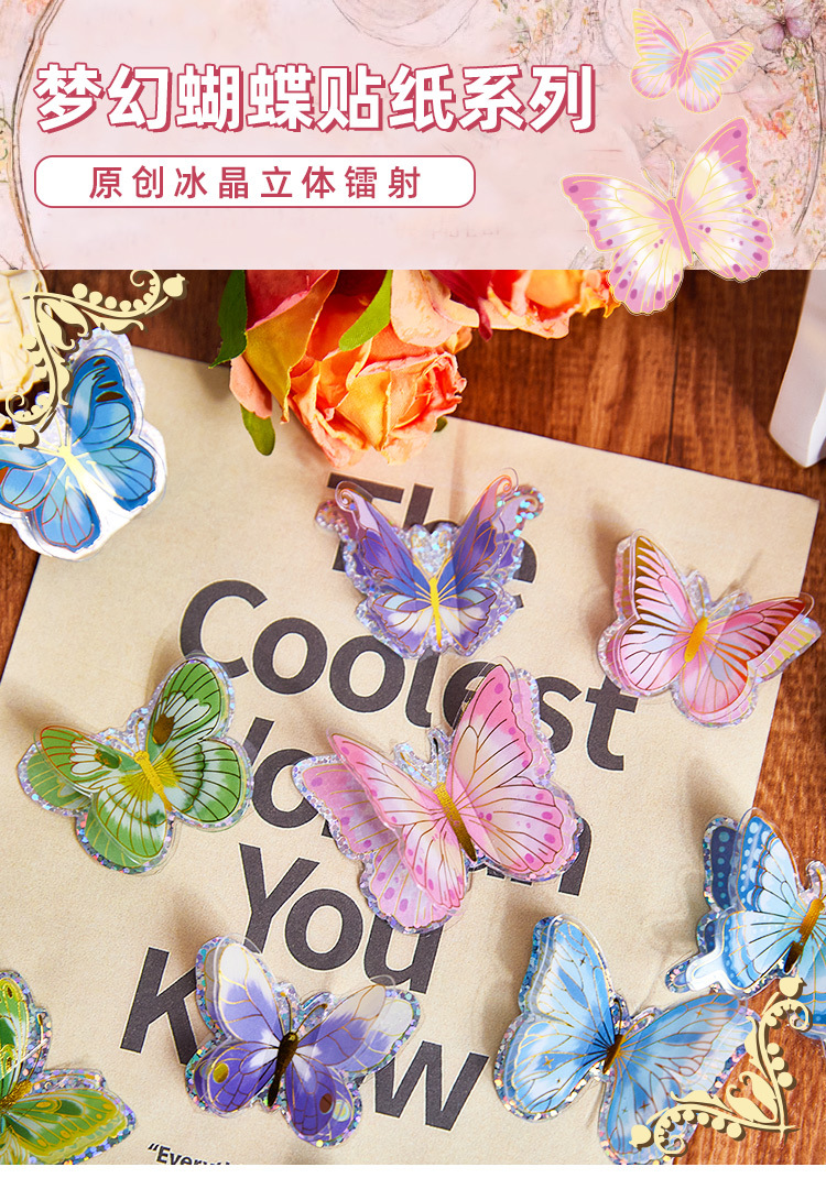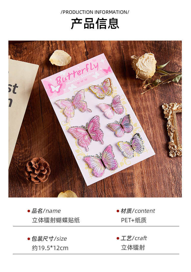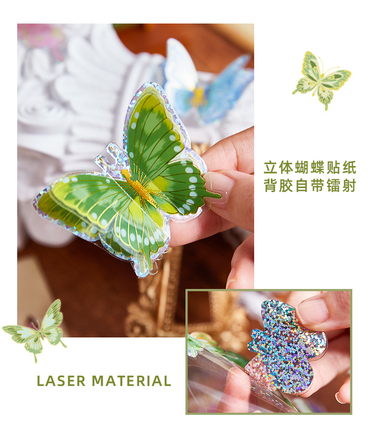 Pegatinas de mariposa de fantasía Pegatinas de cuenta de mano de bronceado con láser tridimensional Pegatinas decorativas de collage de cuenta de mano de tarjeta de mariposa retro