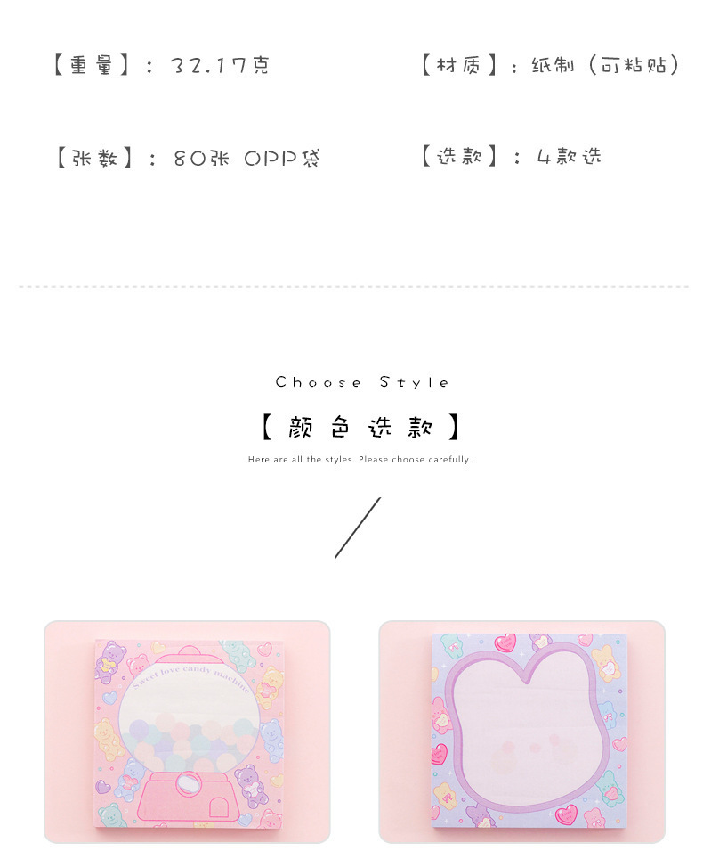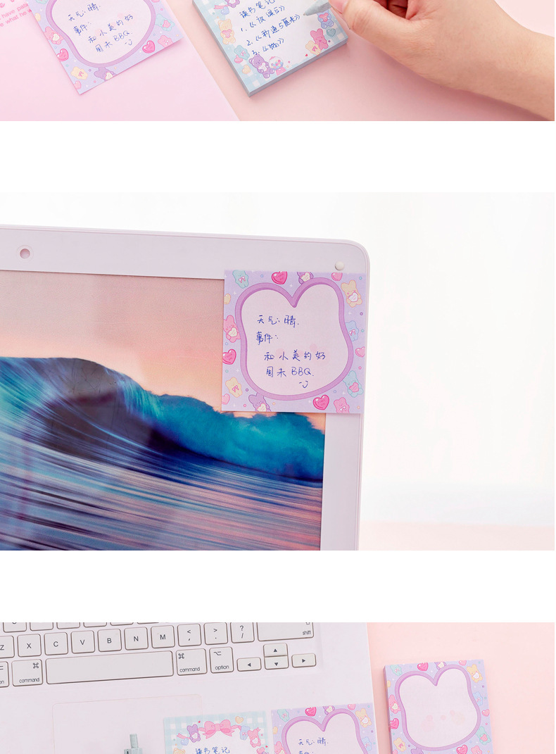 Lindo dibujos animados de alto aspecto nota adhesiva girly corazón estudiante etiqueta suave oso lindo mensaje portátil N veces pegatinas