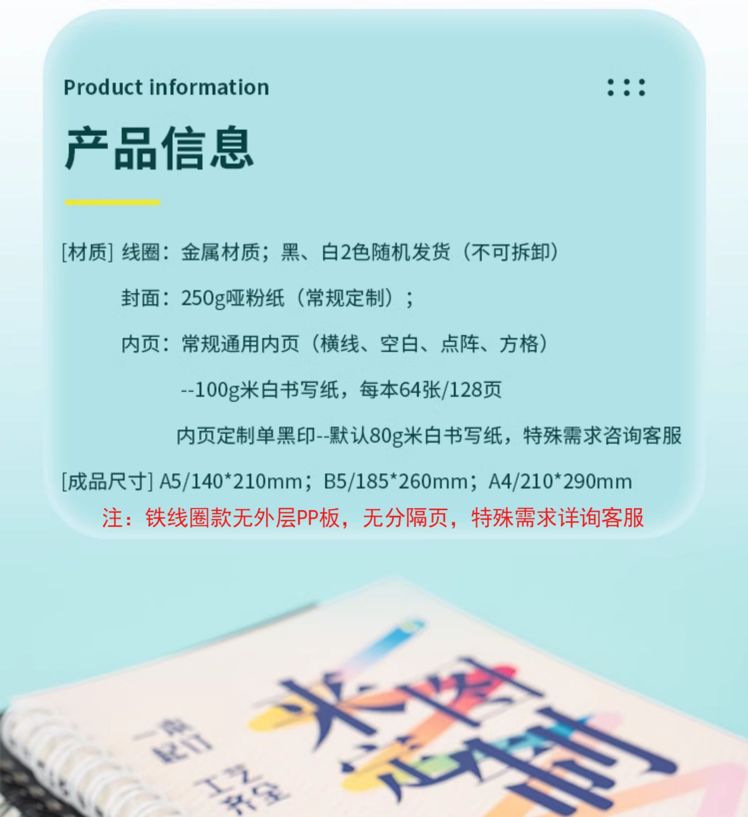 | Colores de la cubierta | 1 precio [Consulte con el servicio al cliente para obtener más detalles, envíe un libro de bobina ordinario sin consultar] |