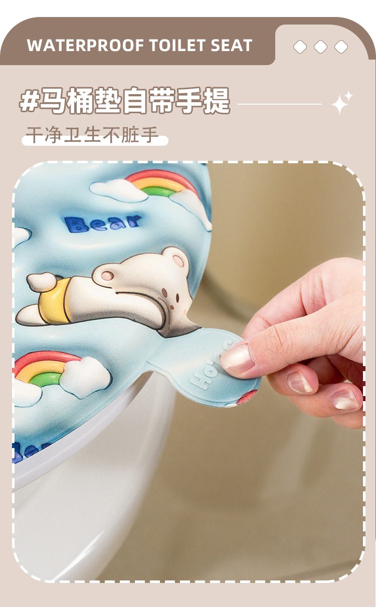 Cojín de asiento de inodoro engrosado asiento de inodoro lavable para el hogar mango de dibujos animados cojín de asiento de inodoro cuatro estaciones cubierta de inodoro universal