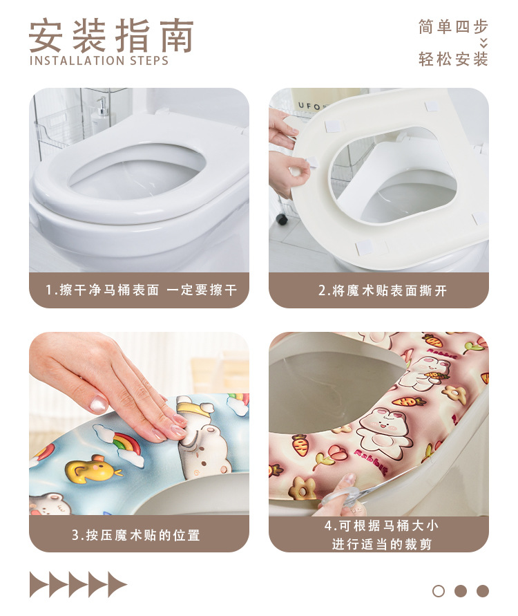 Alfombrilla de inodoro de otoño e invierno, engrosamiento para el hogar, nueva funda de inodoro, cojín de inodoro de dibujos animados con cremallera universal de cuatro estaciones