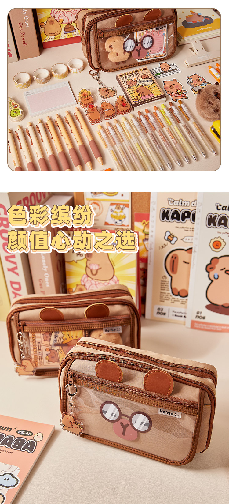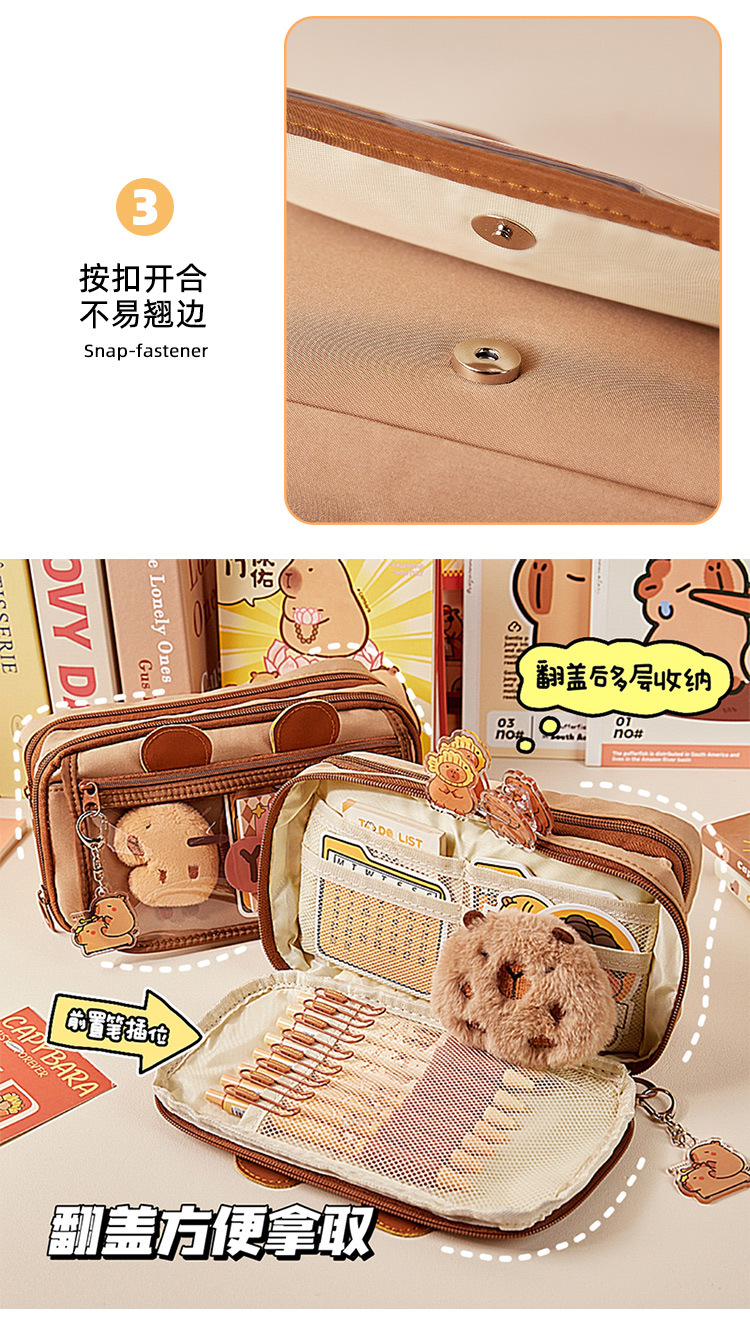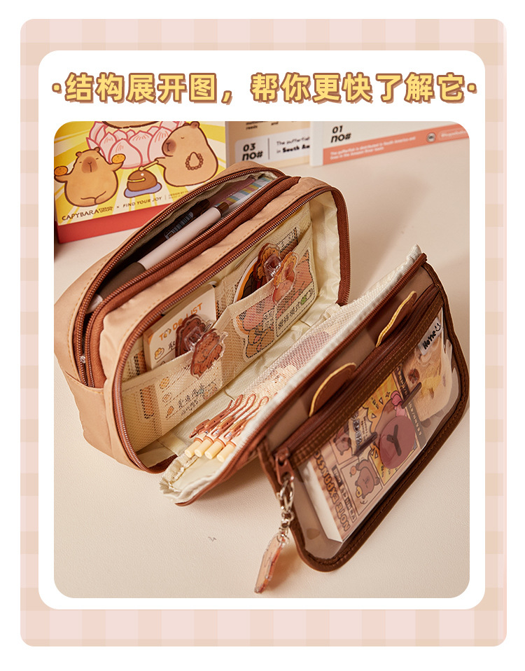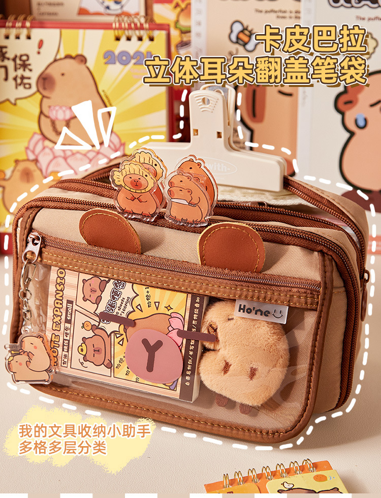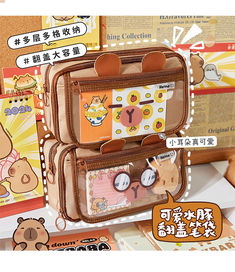 El nuevo estuche de lápices de gran capacidad Kapibala, bolso de papelería lindo transparente, caja de lápices con tapa de múltiples capas de alto valor para estudiantes
