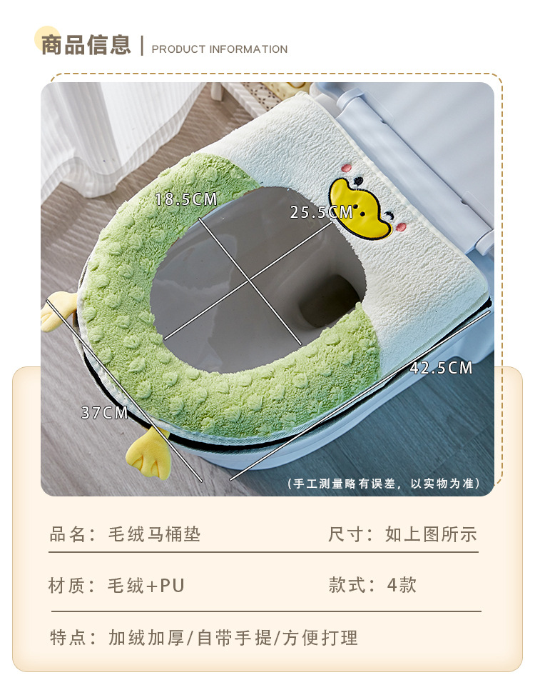 | Colores | Verde (más engrosamiento de terciopelo),Rosa (más engrosamiento de terciopelo),Beige (más engrosamiento de terciopelo),Morado (más engrosamiento de terciopelo),Girasol-Verde,Girasol-Rosa,Girasol-beige,Girasol-Púrpura,Lindo conejo-verde,Lindo conejo-rosa,Lindo conejo-beige,Conejo lindo-púrpura,Pegatinas de inodoro: feliz todos los días,Pegatinas de inodoro: te envían flores,Pegatinas de inodoro-burbujas de colores,Pegatinas de inodoro-tiempo de baño,Pegatinas de inodoro-playa soleada,Pegatinas de inodoro-Buenos días,Pegatinas de inodoro-gato perezoso,Etiqueta engomada para inodoro-Bear honesto y grueso,Pegatinas de inodoro-perro animado |