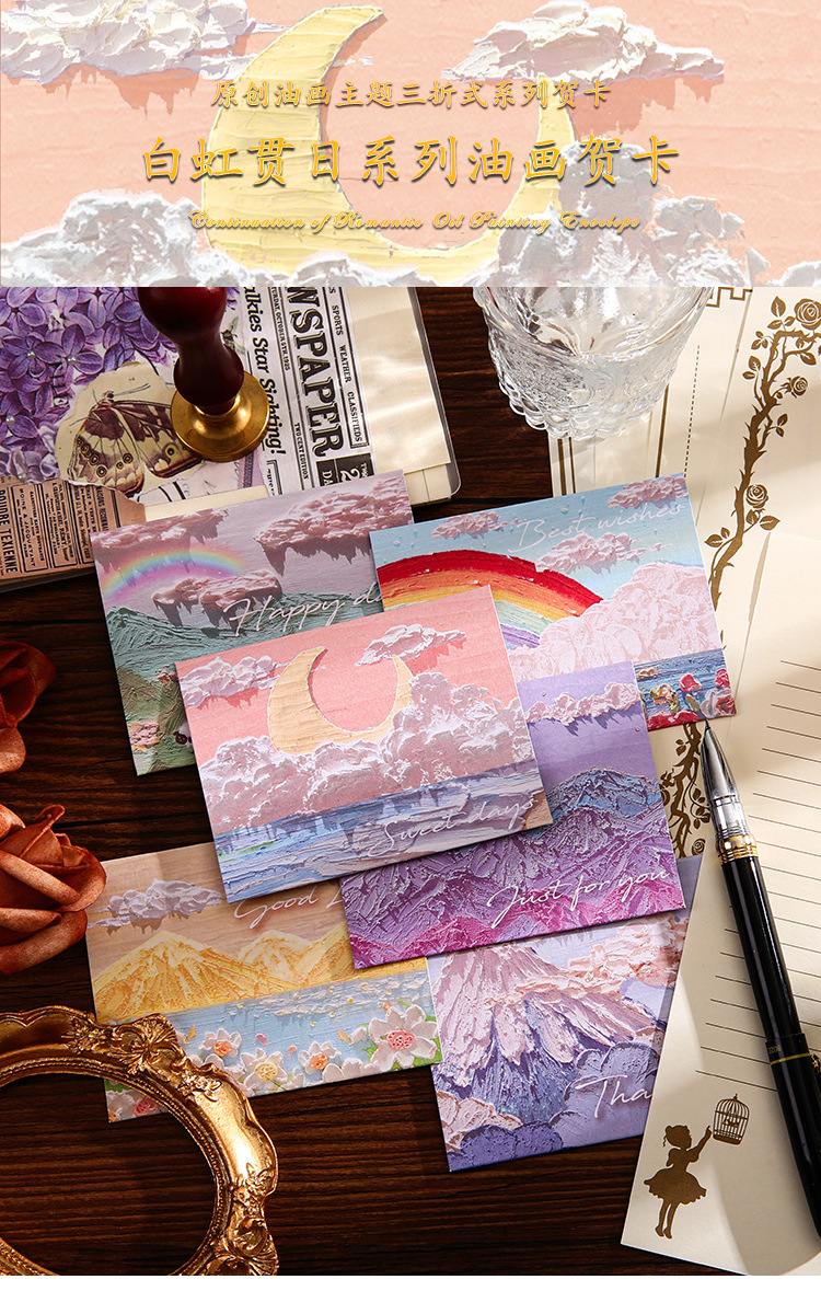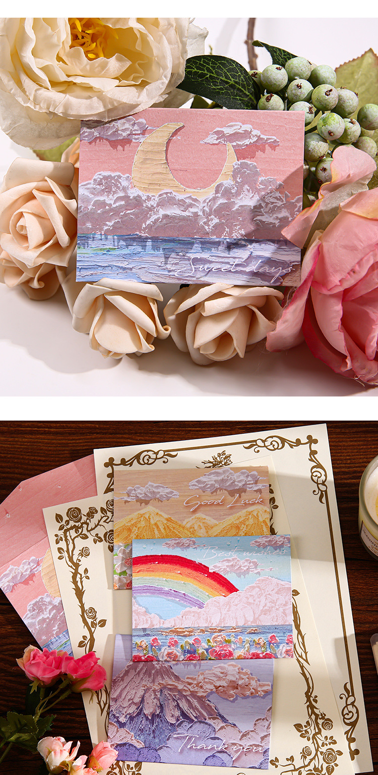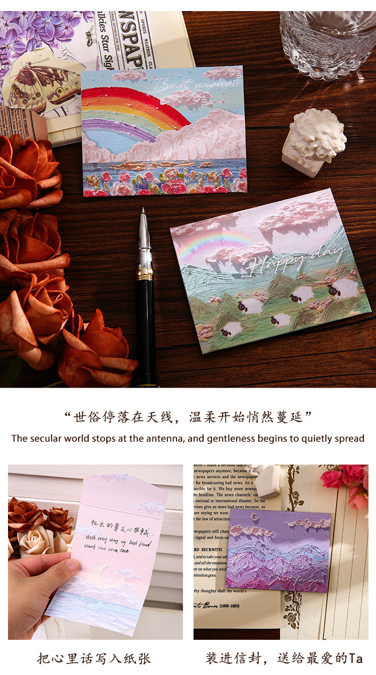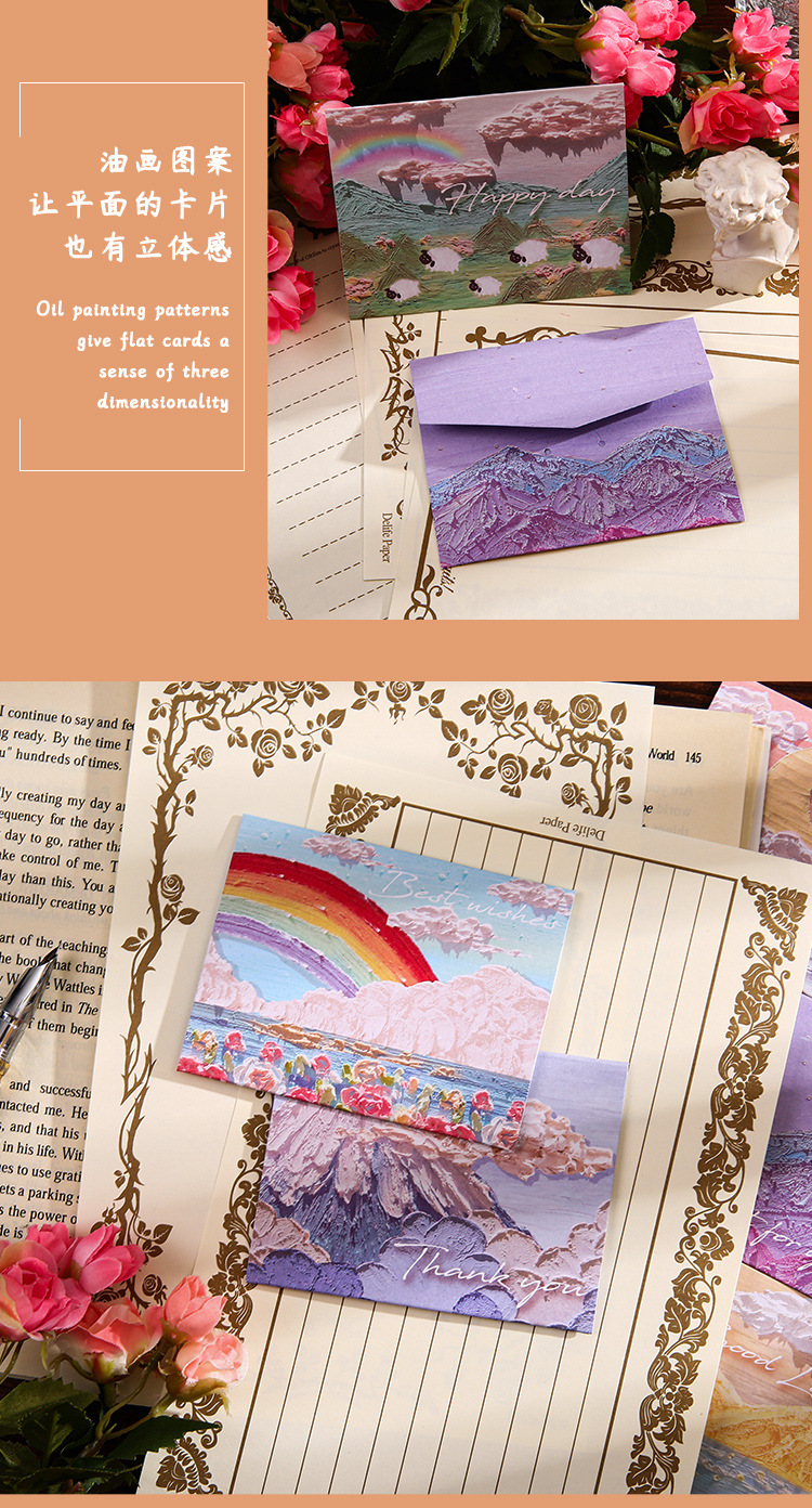 Romance Cure Pintura al óleo Estilo Tarjeta de felicitación navideña para niños Deseos de agradecimiento Regalo de cumpleaños Tarjeta pequeña Tarjeta de mensaje de viento ins