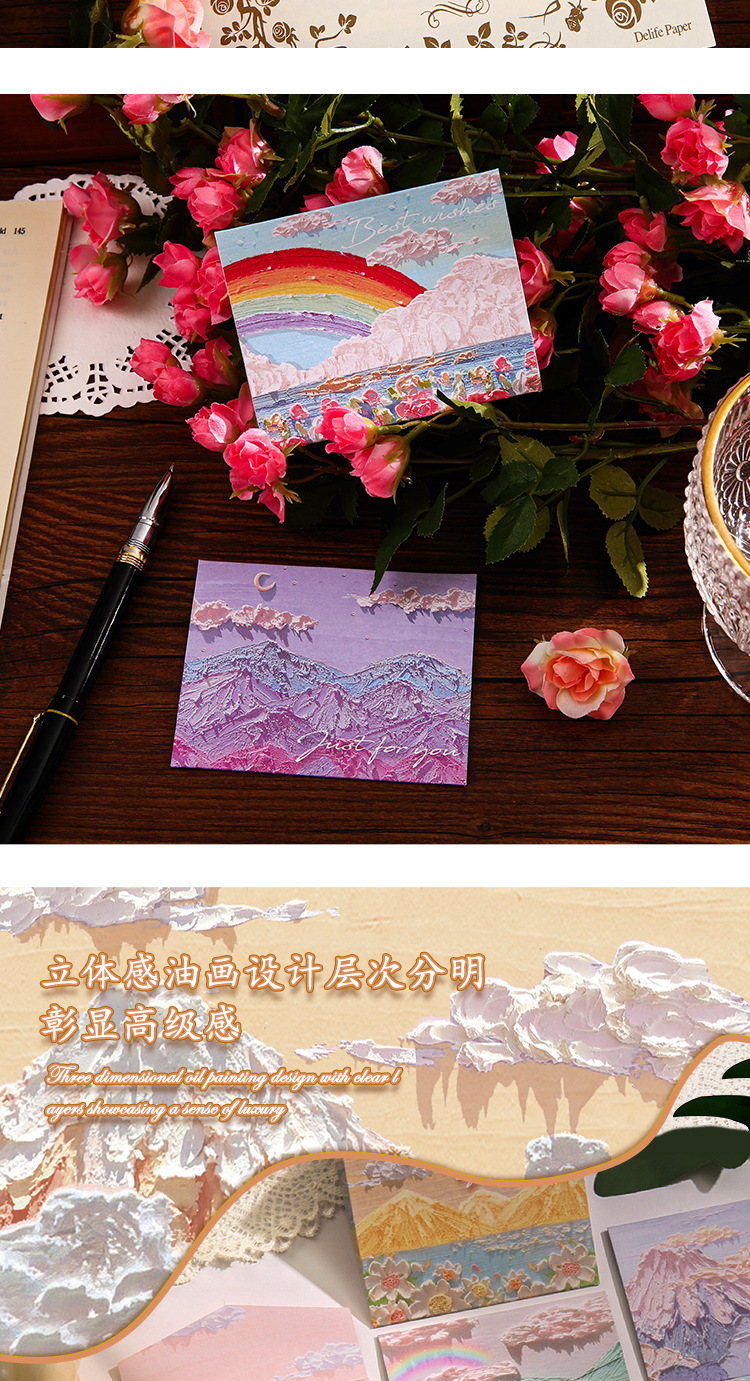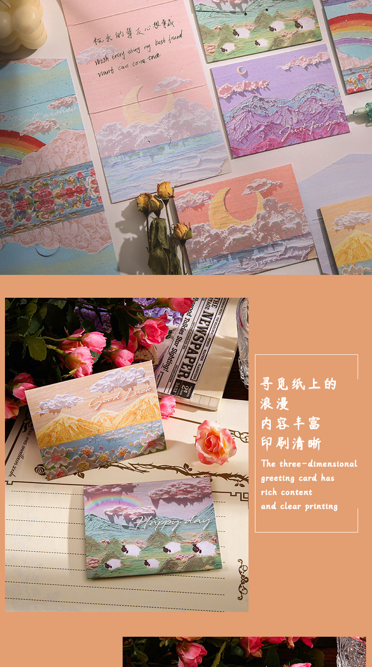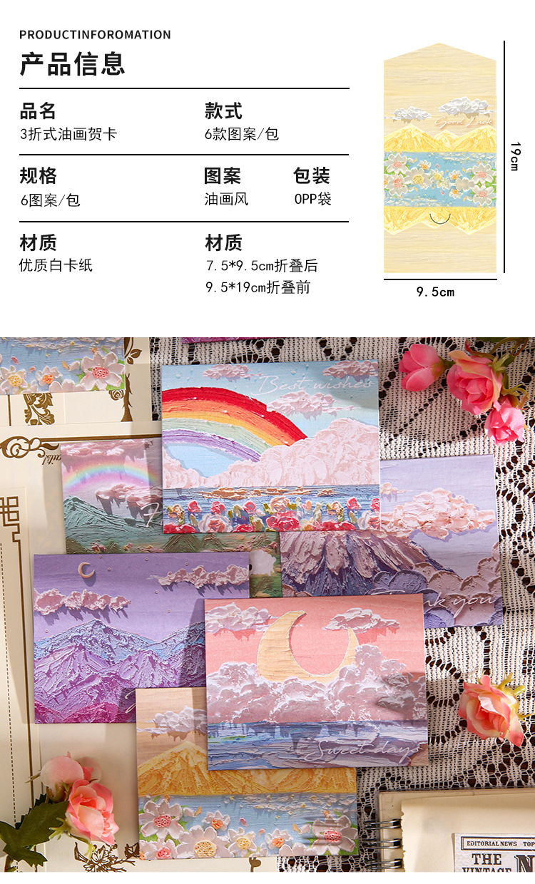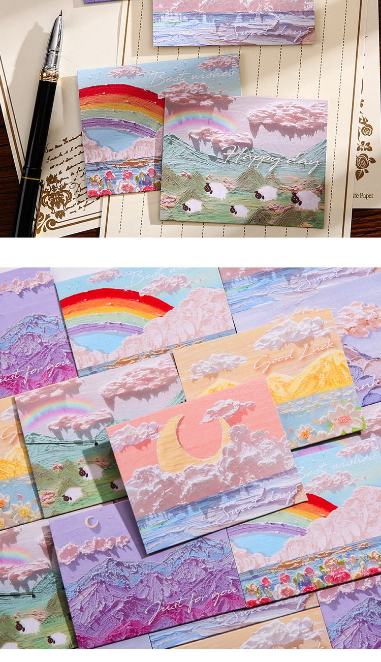Romance Cure Pintura al óleo Estilo Tarjeta de felicitación navideña para niños Deseos de agradecimiento Regalo de cumpleaños Tarjeta pequeña Tarjeta de mensaje de viento ins
