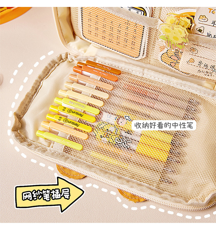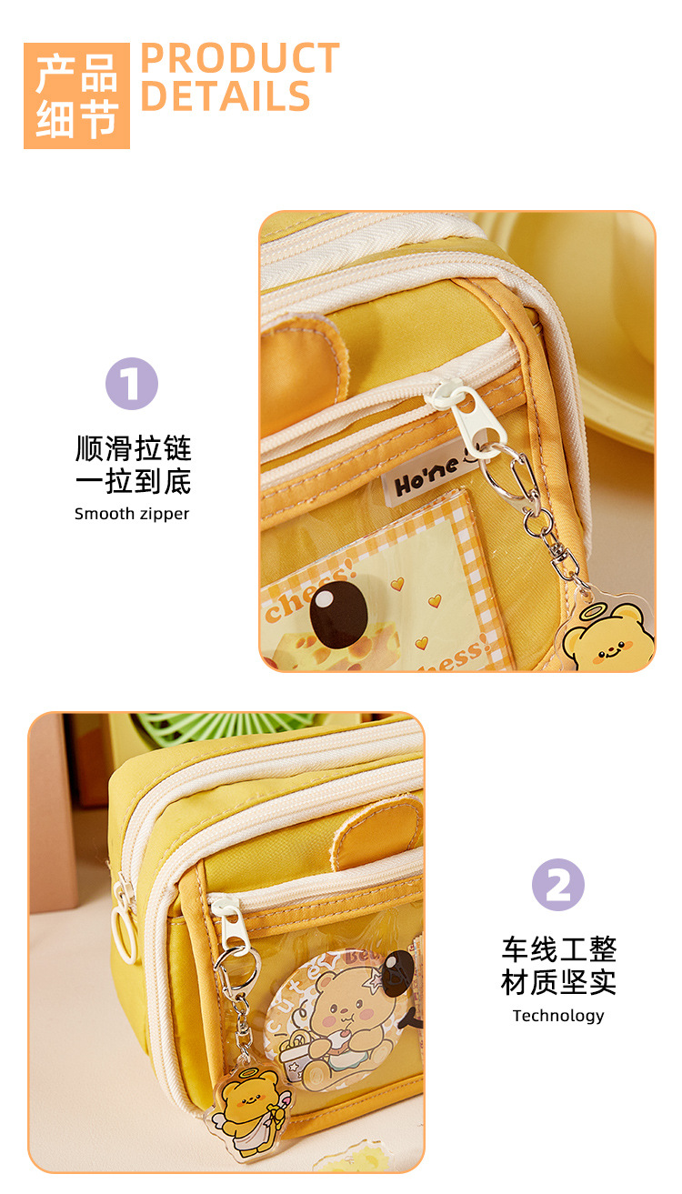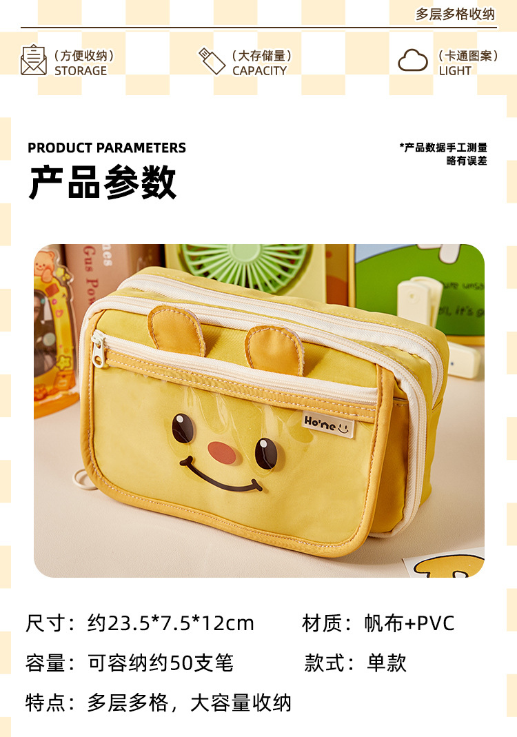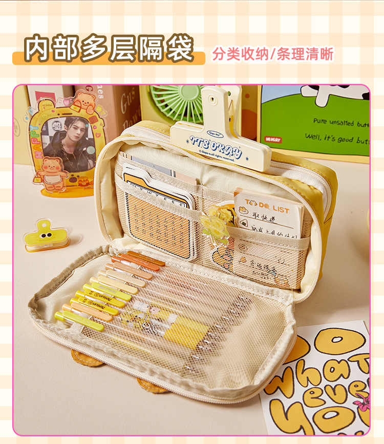 Gran capacidad mantequilla oso bolsas de lápiz caja de papelería para estudiantes de primaria niñas lindas caja de lápiz nueva bolsa de papelería multicapa transparente