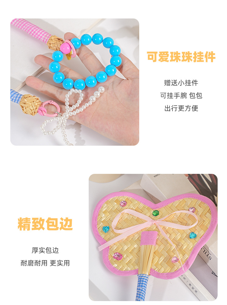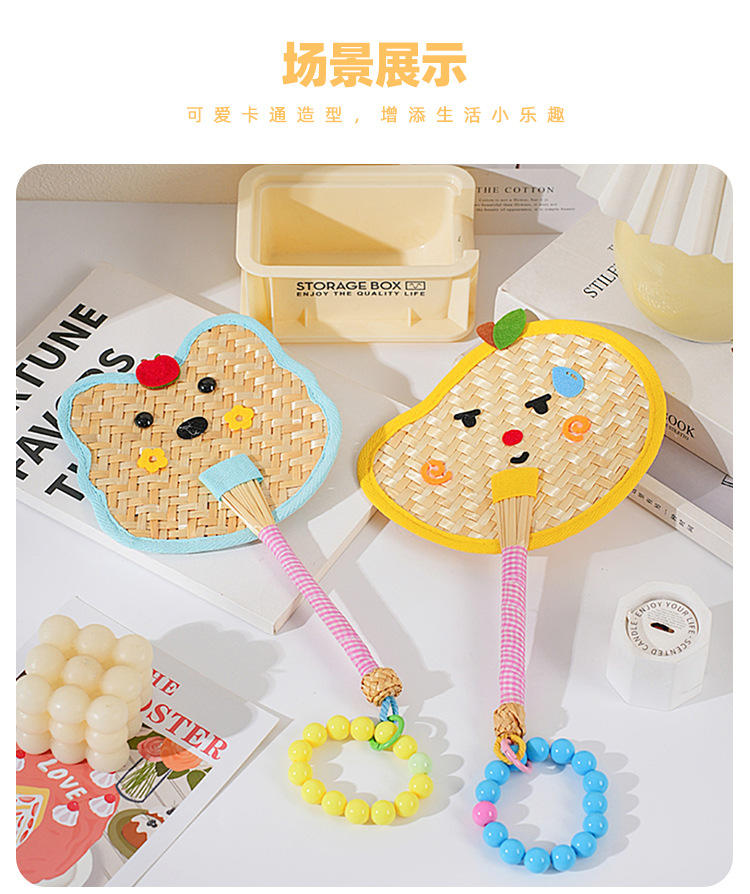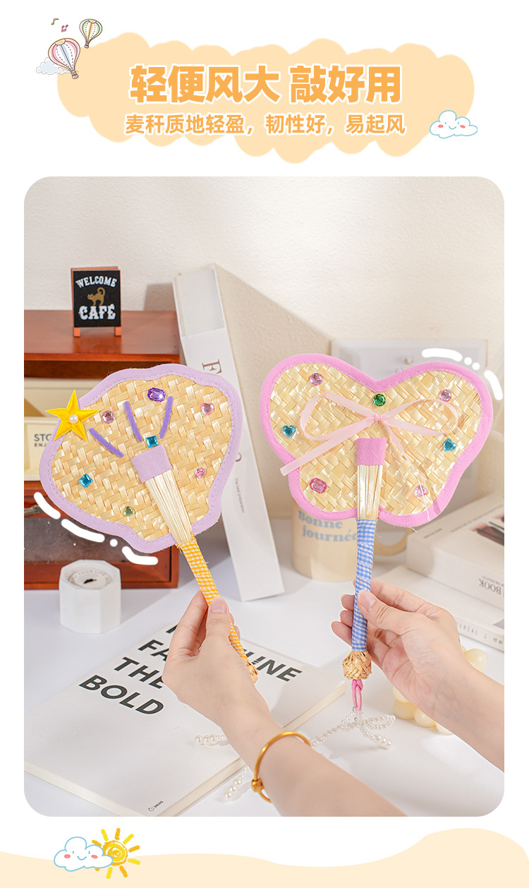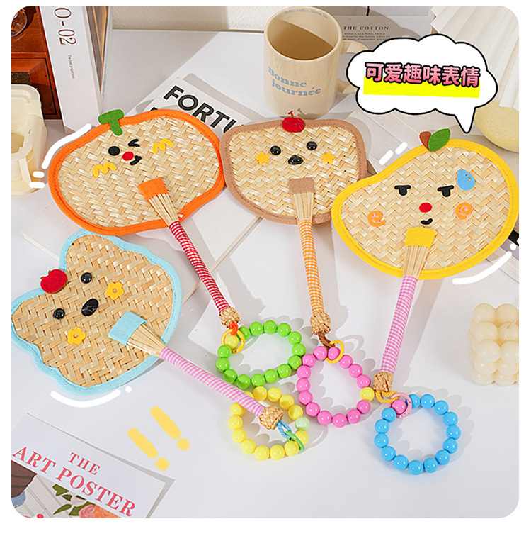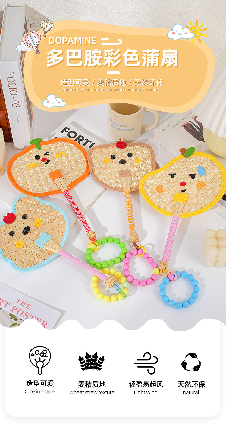 Ventilador de pu de color fresco, paja de trigo, ventilador de dopamina tejido a mano, mini ventilador de mano portátil lindo