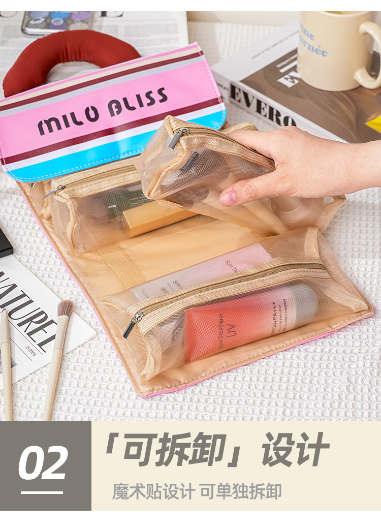 Xiaohongshu bolsa de cosméticos explosiva bolsa de lavado impermeable portátil de color de contraste lindo de gran capacidad bolsa de almacenamiento para productos para el cuidado de la piel femenina