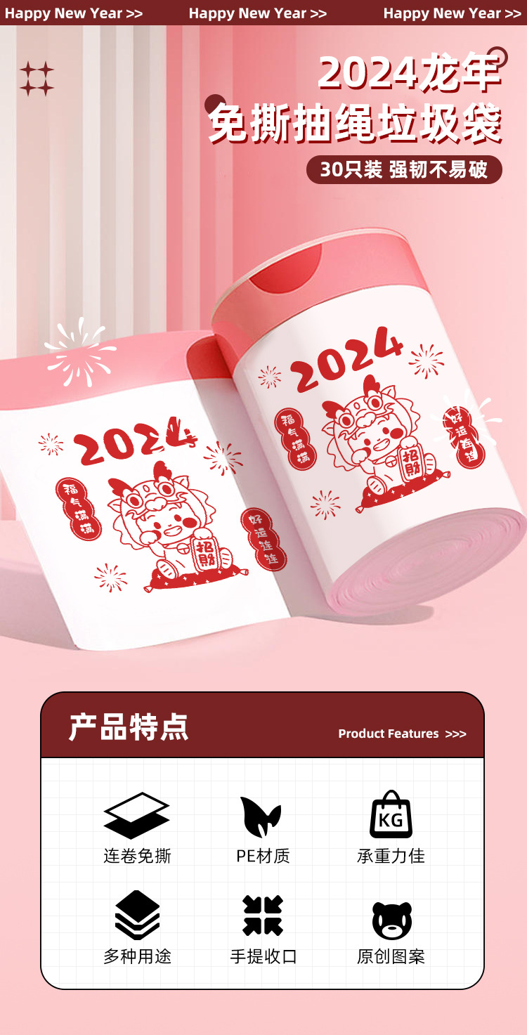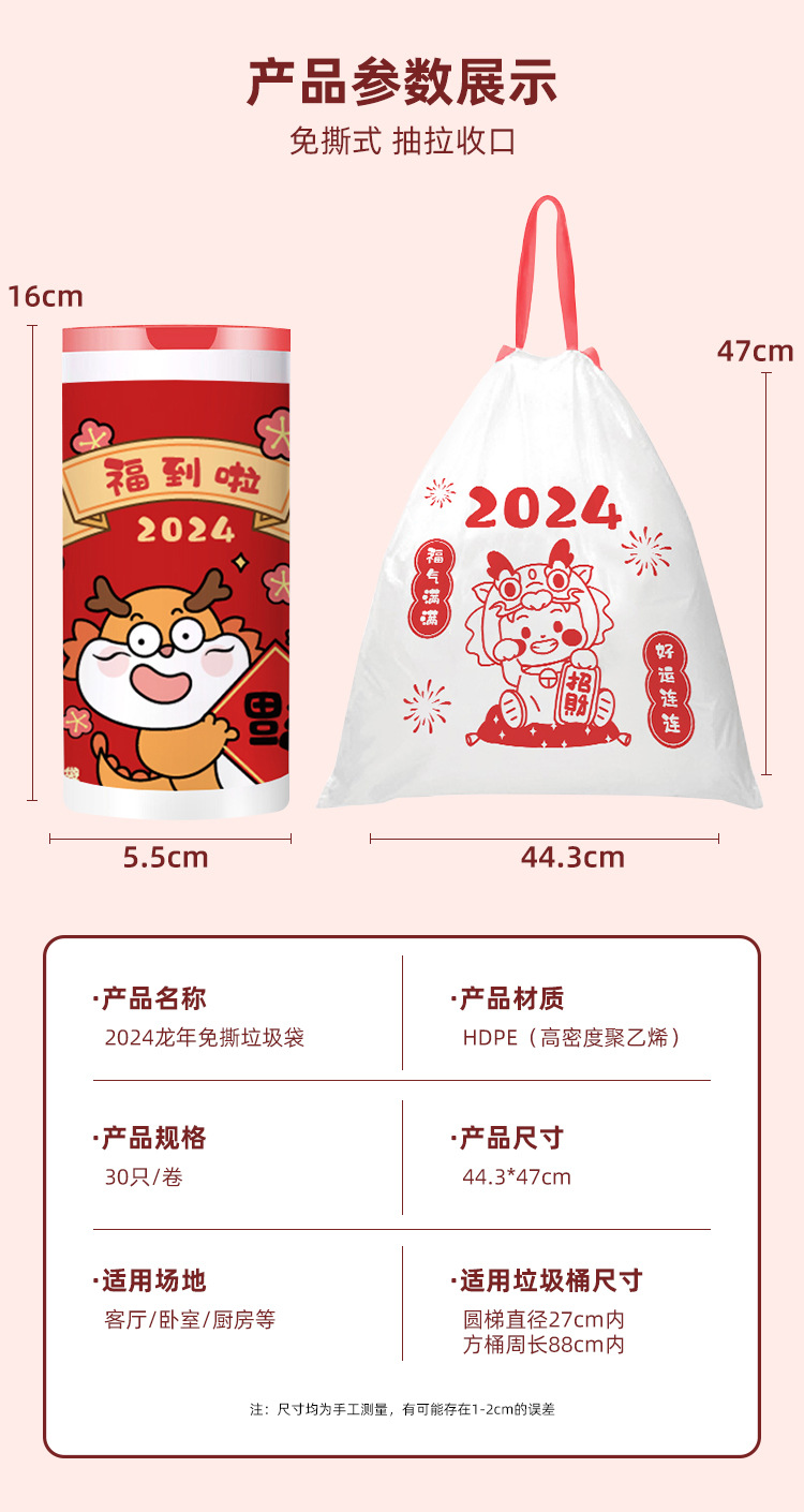 | Color | 2024 Dragon año bolsa de basura sin lágrimas [1 rollo 30 PCs],2024 Dragon año bolsa de basura sin lágrimas [3 rollos y 90 PCs],2024 Dragon año bolsa de basura sin lágrimas [5 rollos y 150 PCs],2024 Dragon año bolsa de basura sin lágrimas [10 rollos y 300 PCs] |