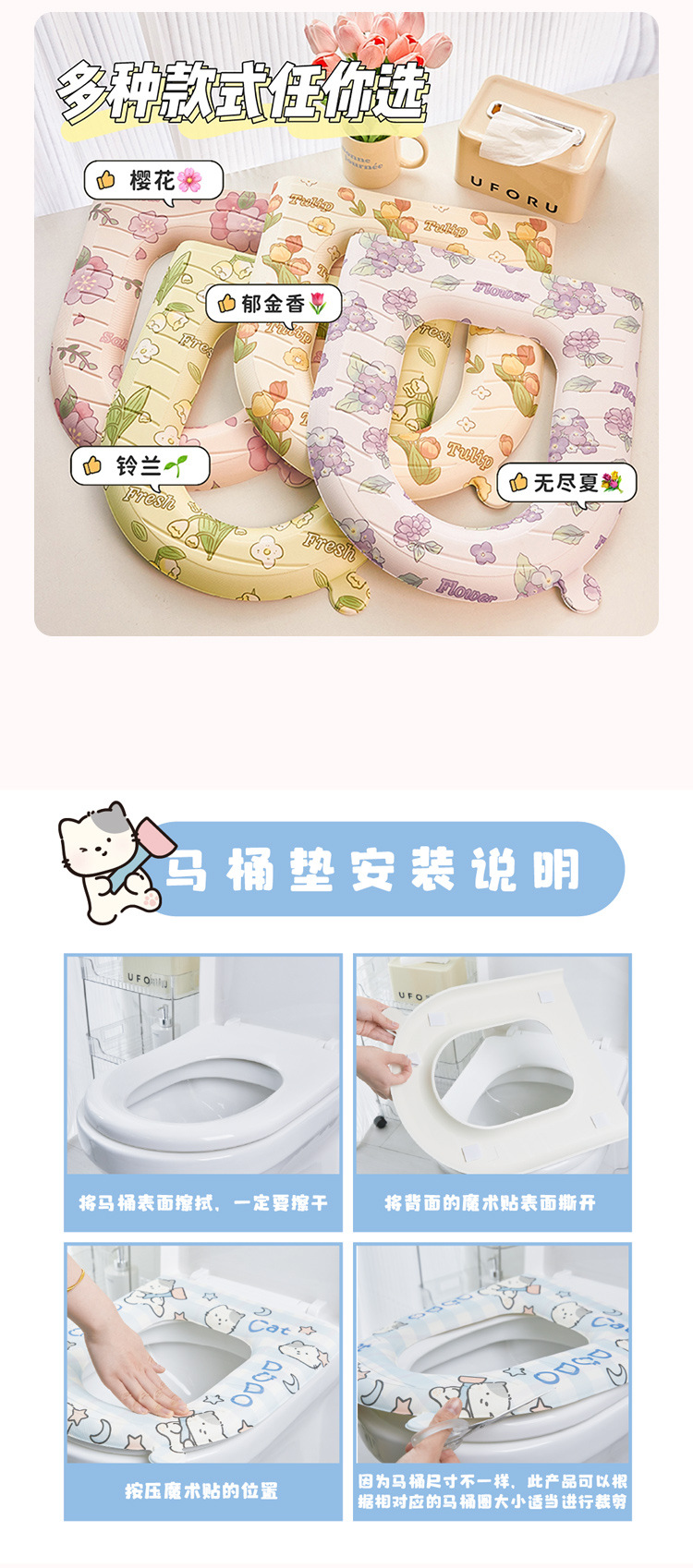 Impresión impermeable cojín del asiento del inodoro cuatro estaciones Hogar Universal espuma de silicona EVA lavado inodoro cubierta del asiento del inodoro