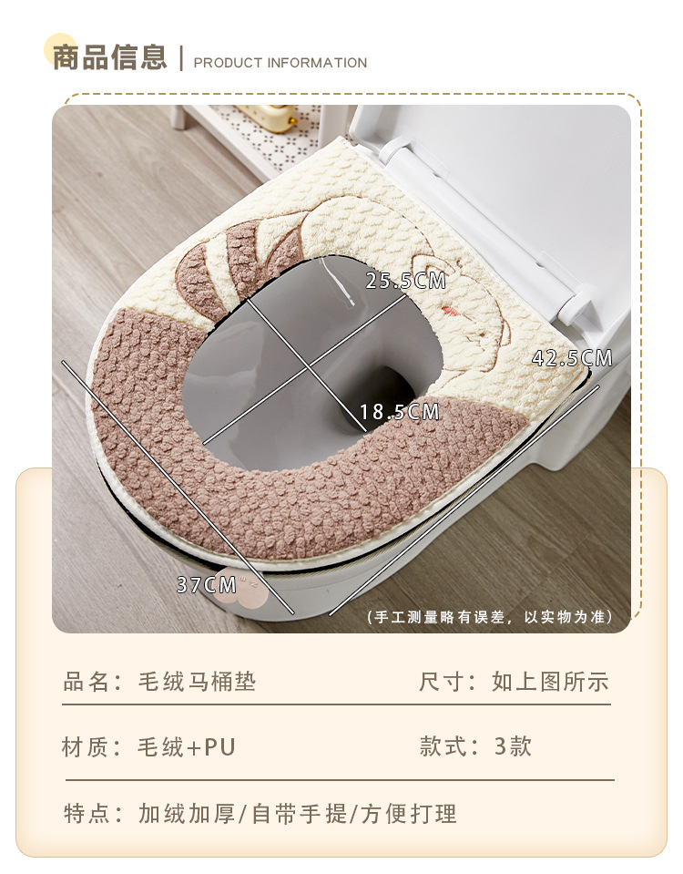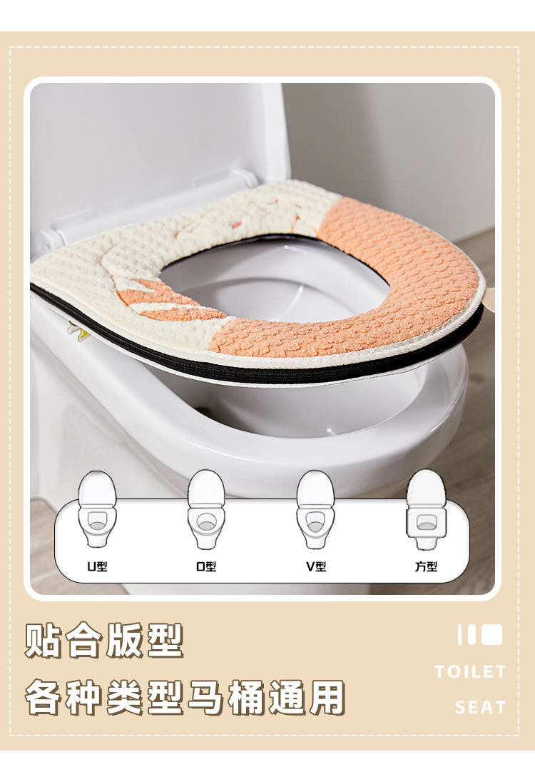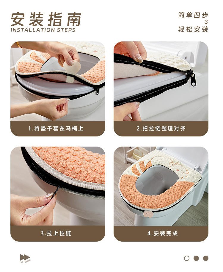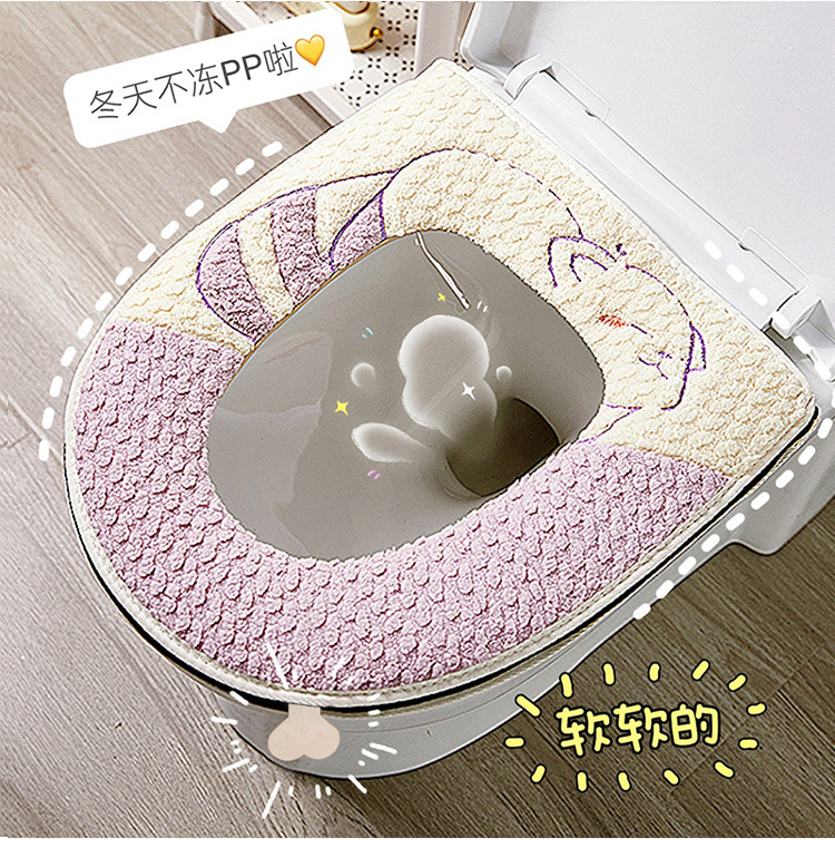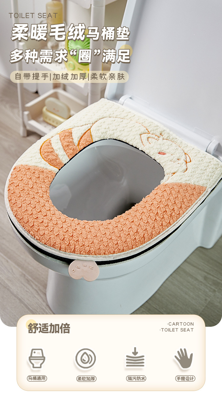 Alfombrilla de inodoro de otoño e invierno, engrosamiento para el hogar, nueva funda de inodoro, cojín de inodoro de dibujos animados con cremallera universal de cuatro estaciones