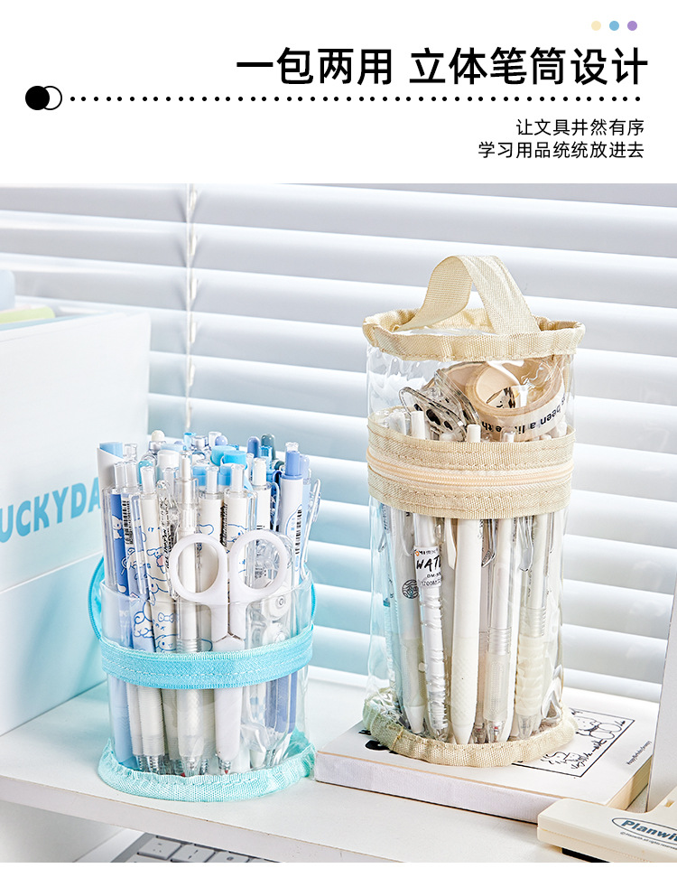Bolso para lápices con cilindro de pudín transparente