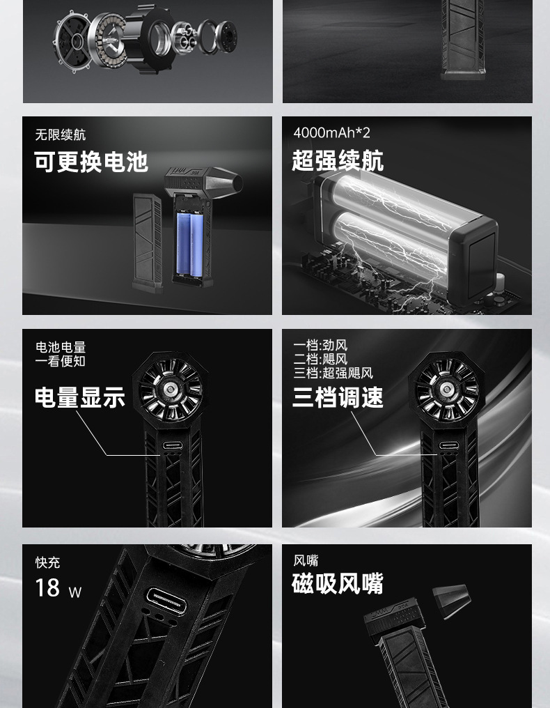| Funciones adicionales | Diseño de batería extraíble, potencia de carga de 18w |
