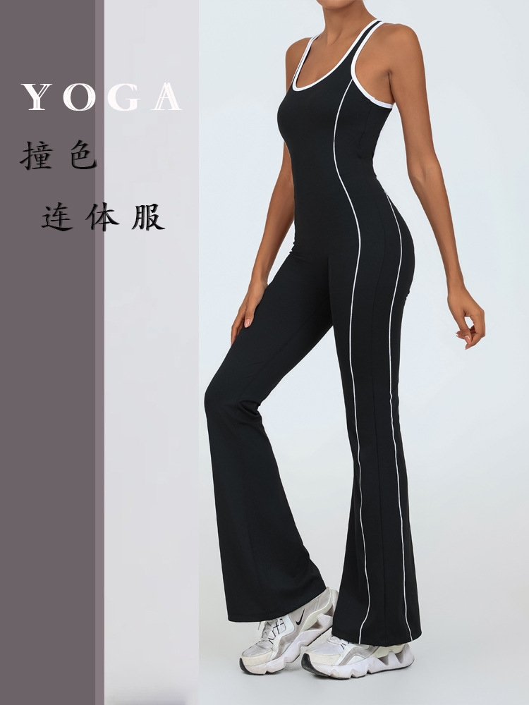 Europeos y estadounidenses deportes transfronterizos yoga trajes de mujer belleza espalda color combinación trajes de desnudez deportiva acondicionamiento físico de piernas anchas bocas
