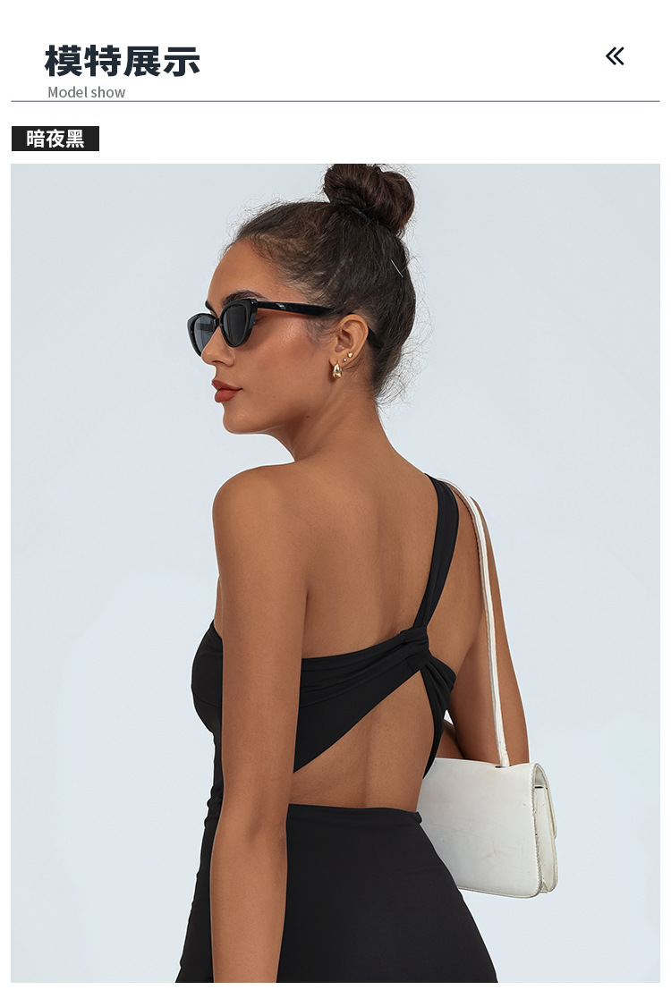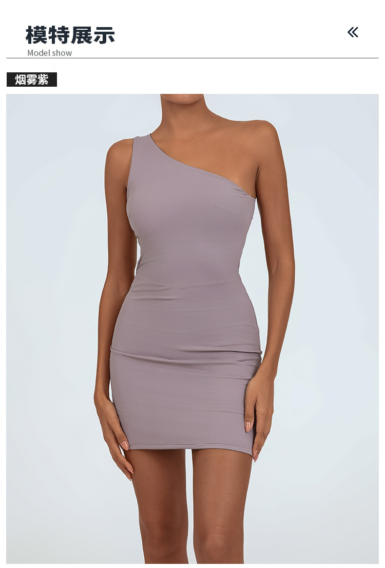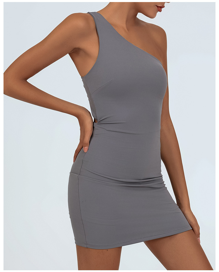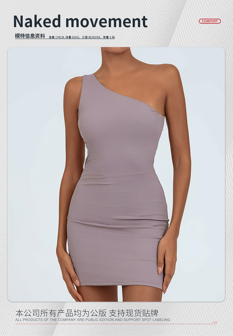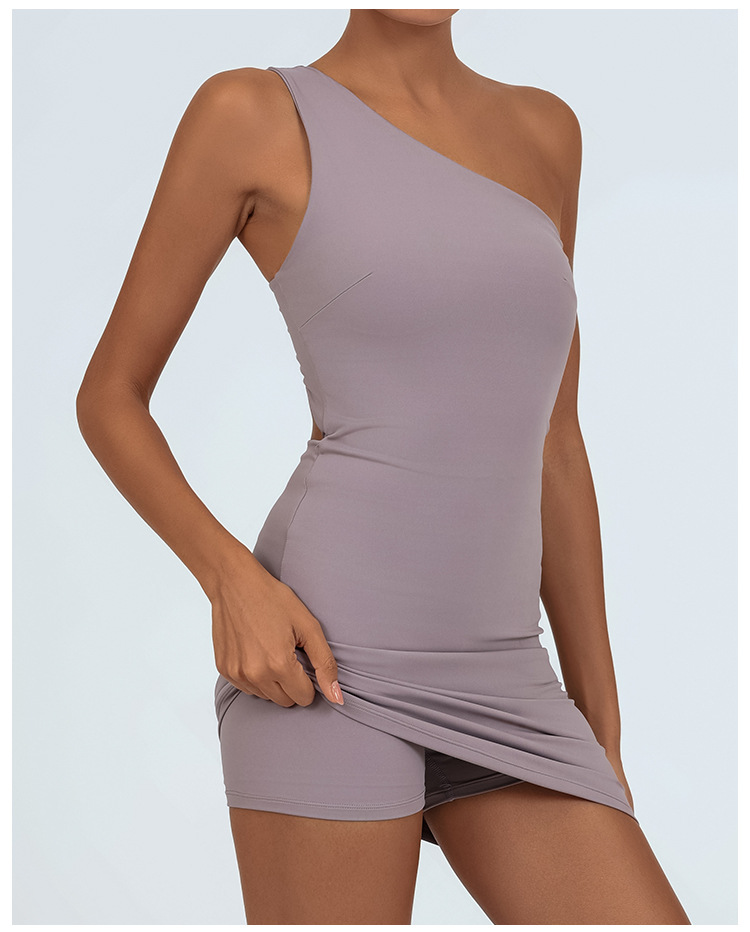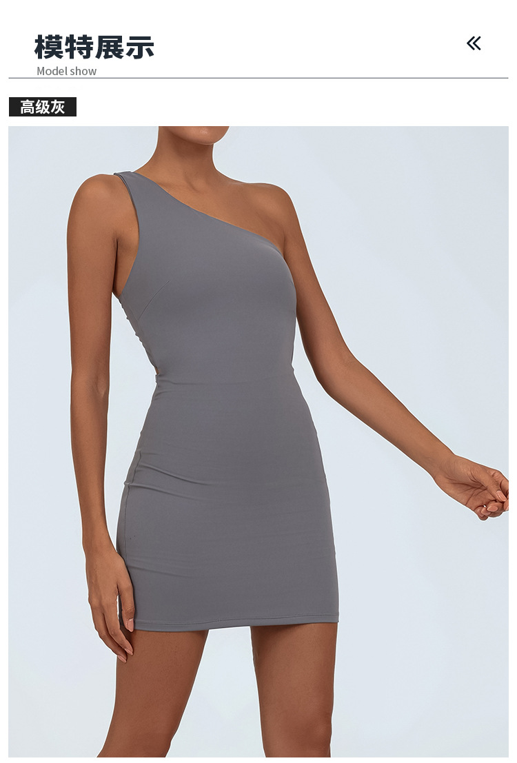 Vesta deportiva transfronteriza con almohadilla de pecho un solo hombro desnudo sensación de piel de yoga rápido seco acondicionamiento físico de belleza de espalda falda de tenis anti-luz