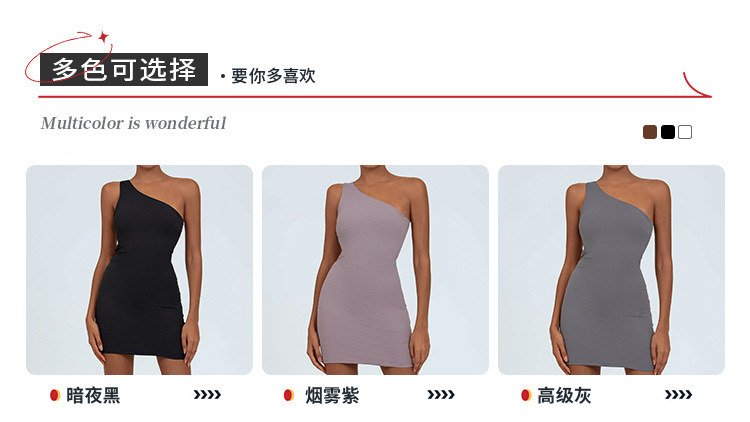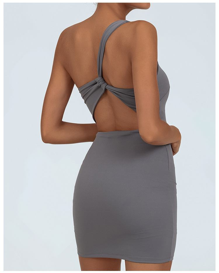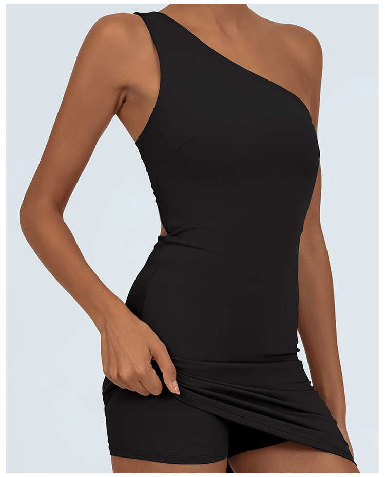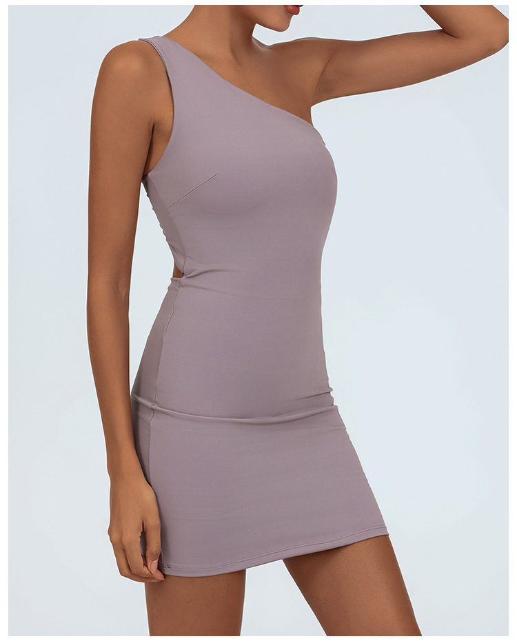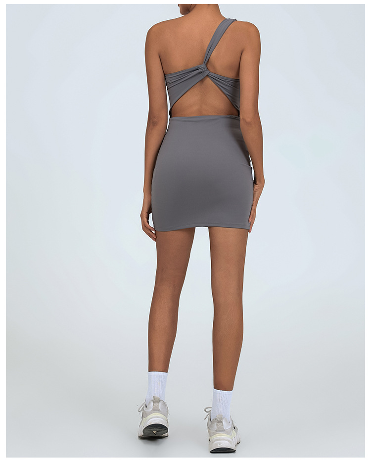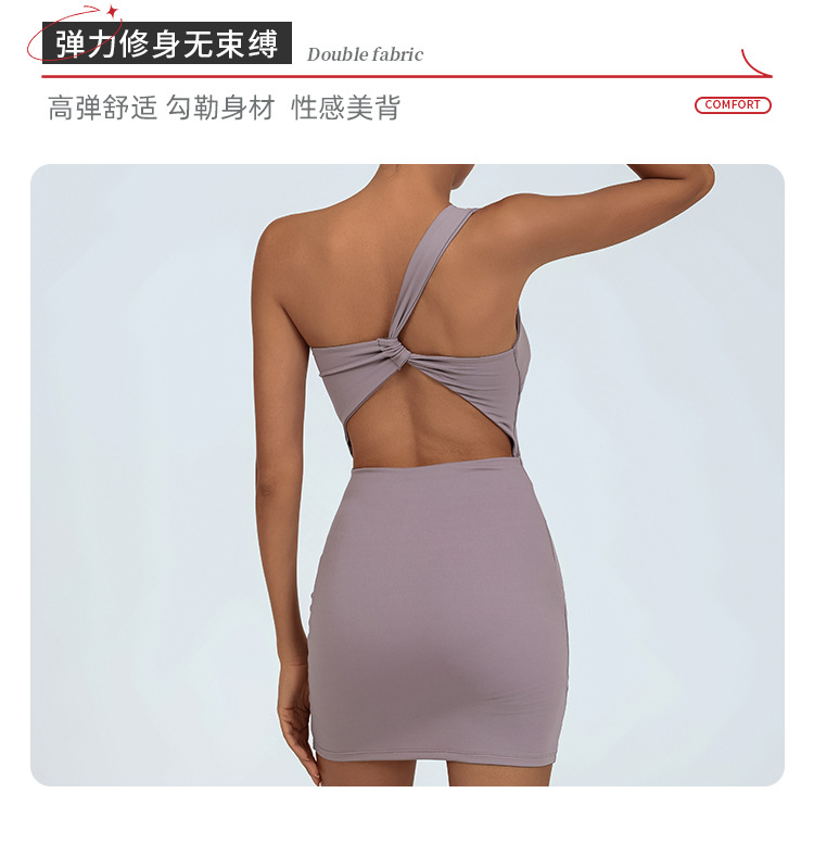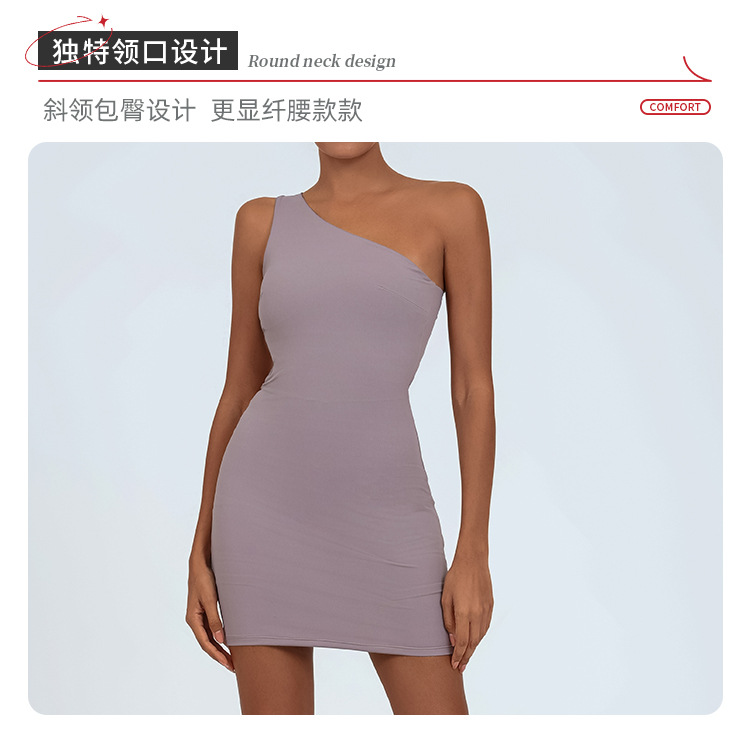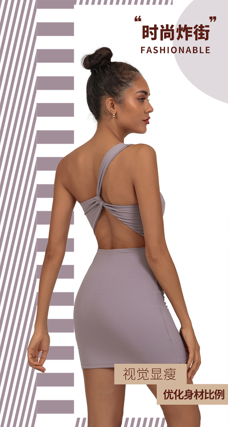 Vesta deportiva transfronteriza con almohadilla de pecho un solo hombro desnudo sensación de piel de yoga rápido seco acondicionamiento físico de belleza de espalda falda de tenis anti-luz