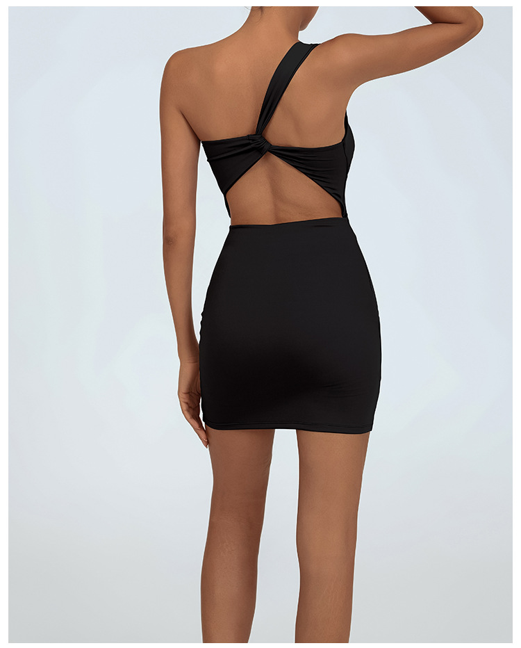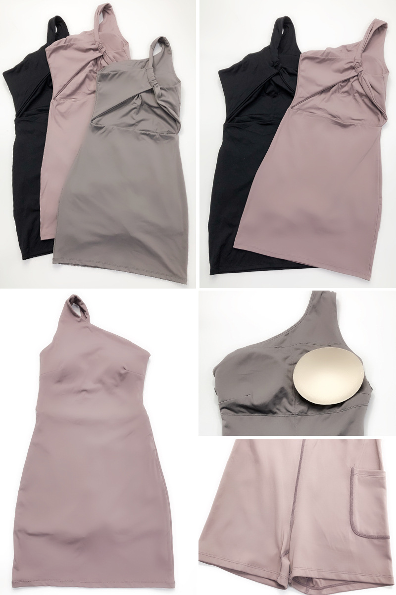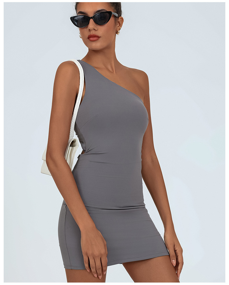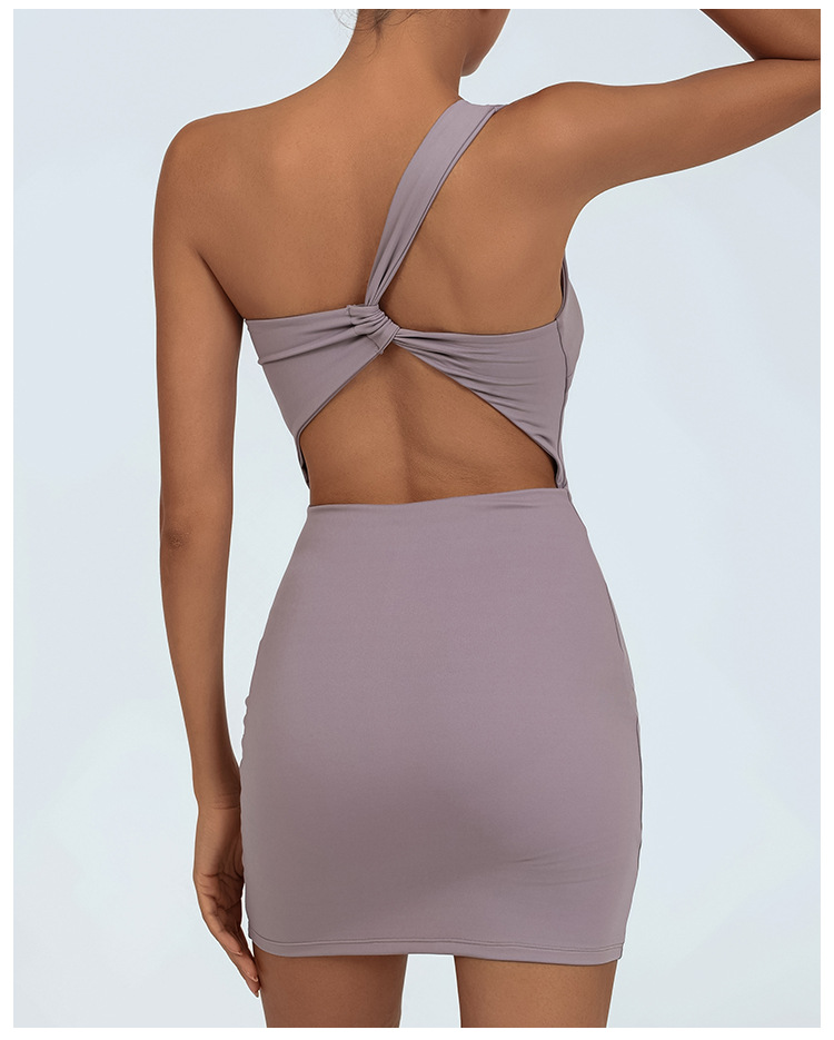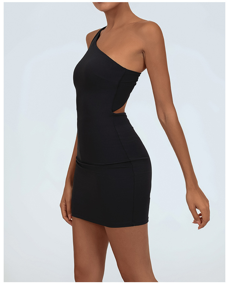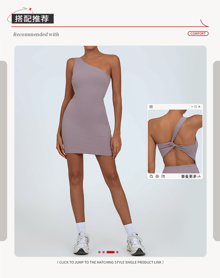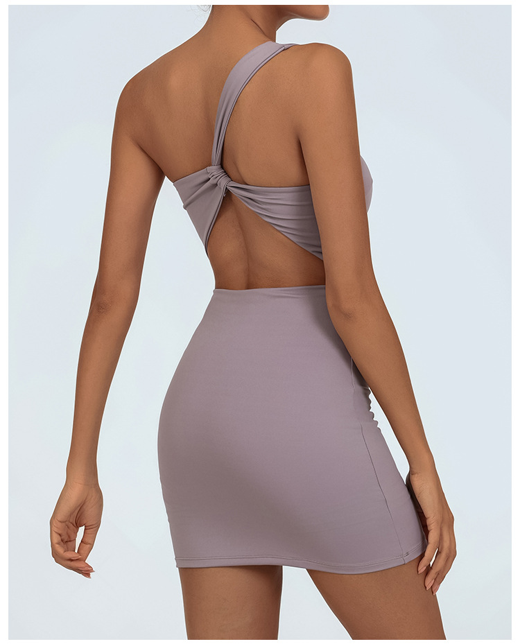 Vesta deportiva transfronteriza con almohadilla de pecho un solo hombro desnudo sensación de piel de yoga rápido seco acondicionamiento físico de belleza de espalda falda de tenis anti-luz
