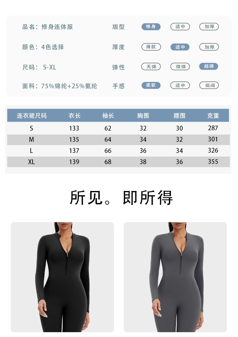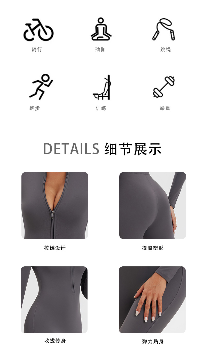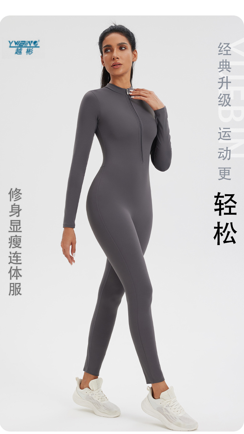 Cross-border cremallera desnuda sensación de yoga tight overalls pantalones al aire libre overalls de mangas largas para correr ropa de fitness