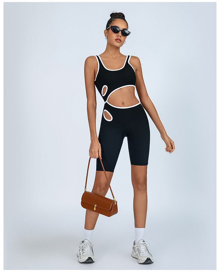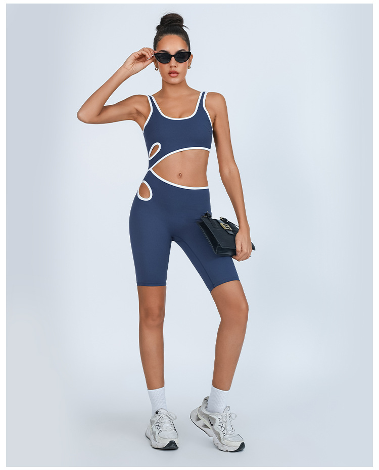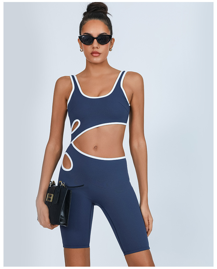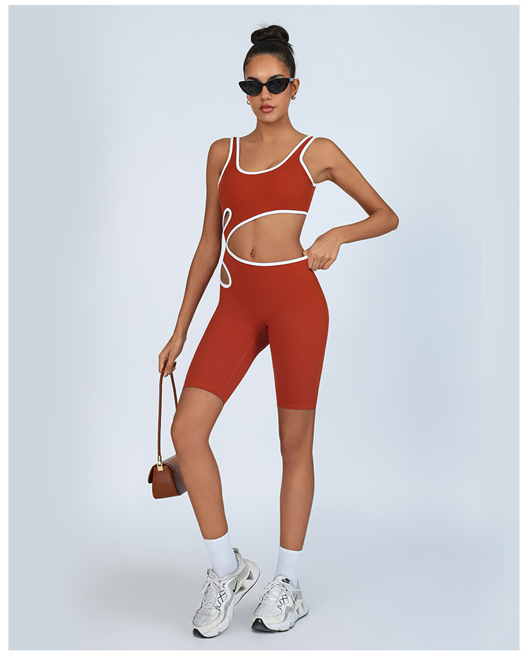 Mono de yoga transfronterizo de comercio exterior, color de contraste femenino, almohadilla para el pecho, alta elasticidad y secado rápido