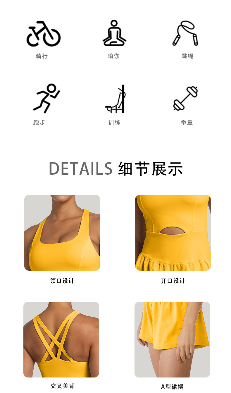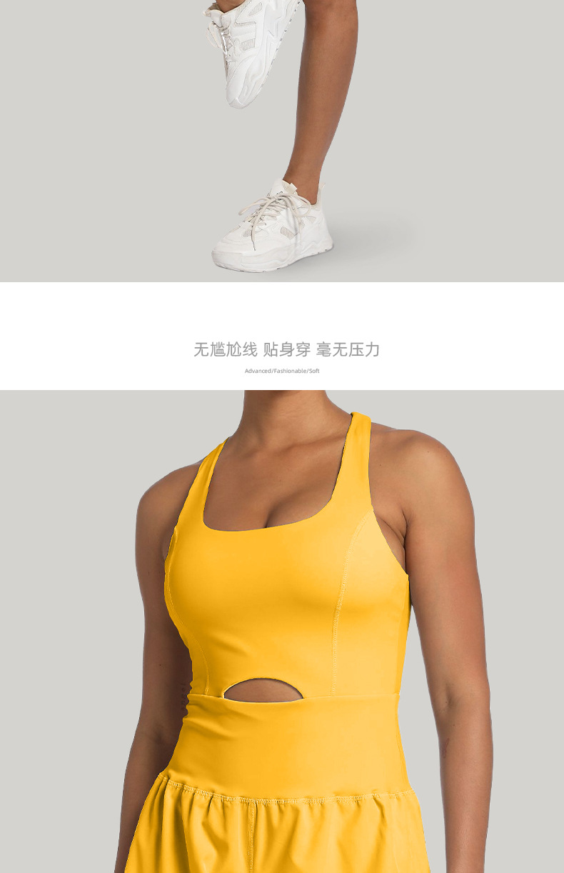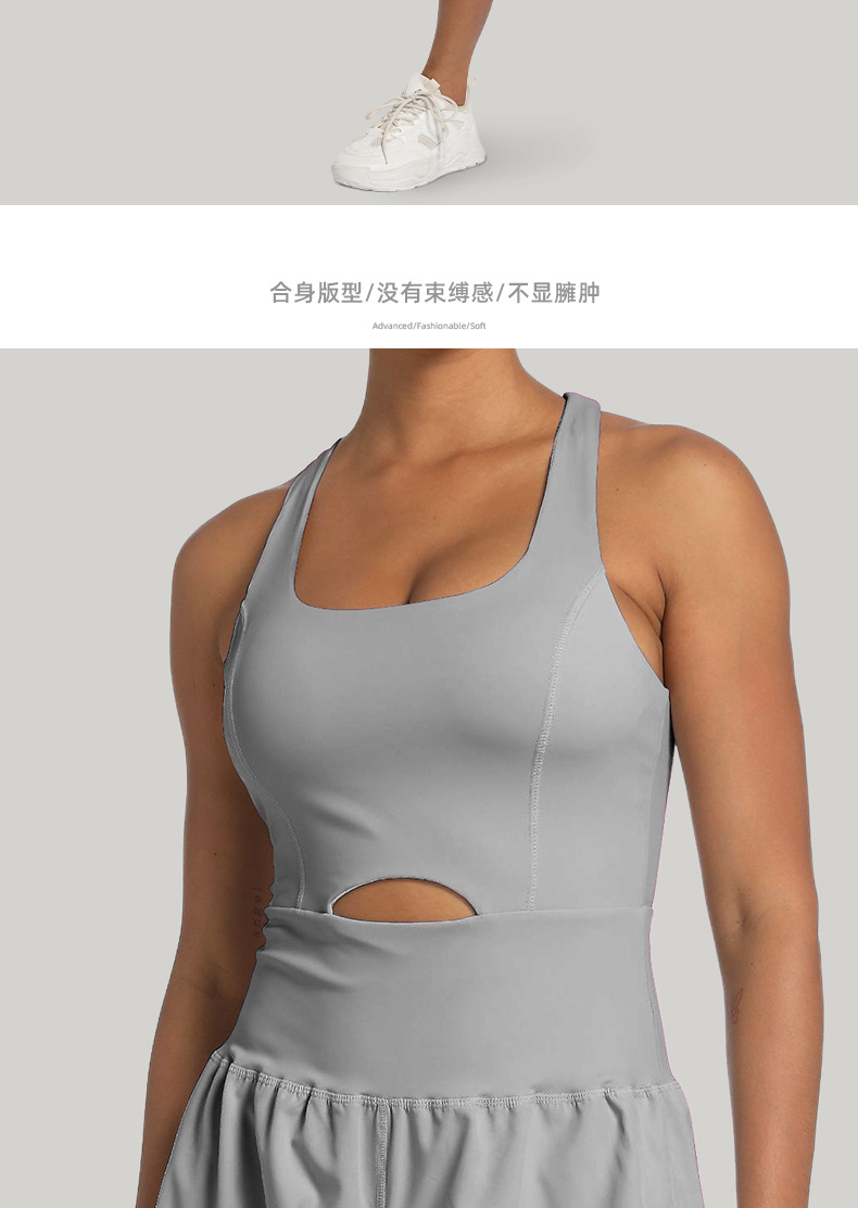 Falda de una pieza de yoga personalizada OEM transfronteriza, falda de tenis de entrenamiento para correr, hermosa espalda, falda deportiva de secado rápido