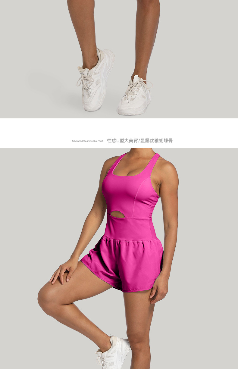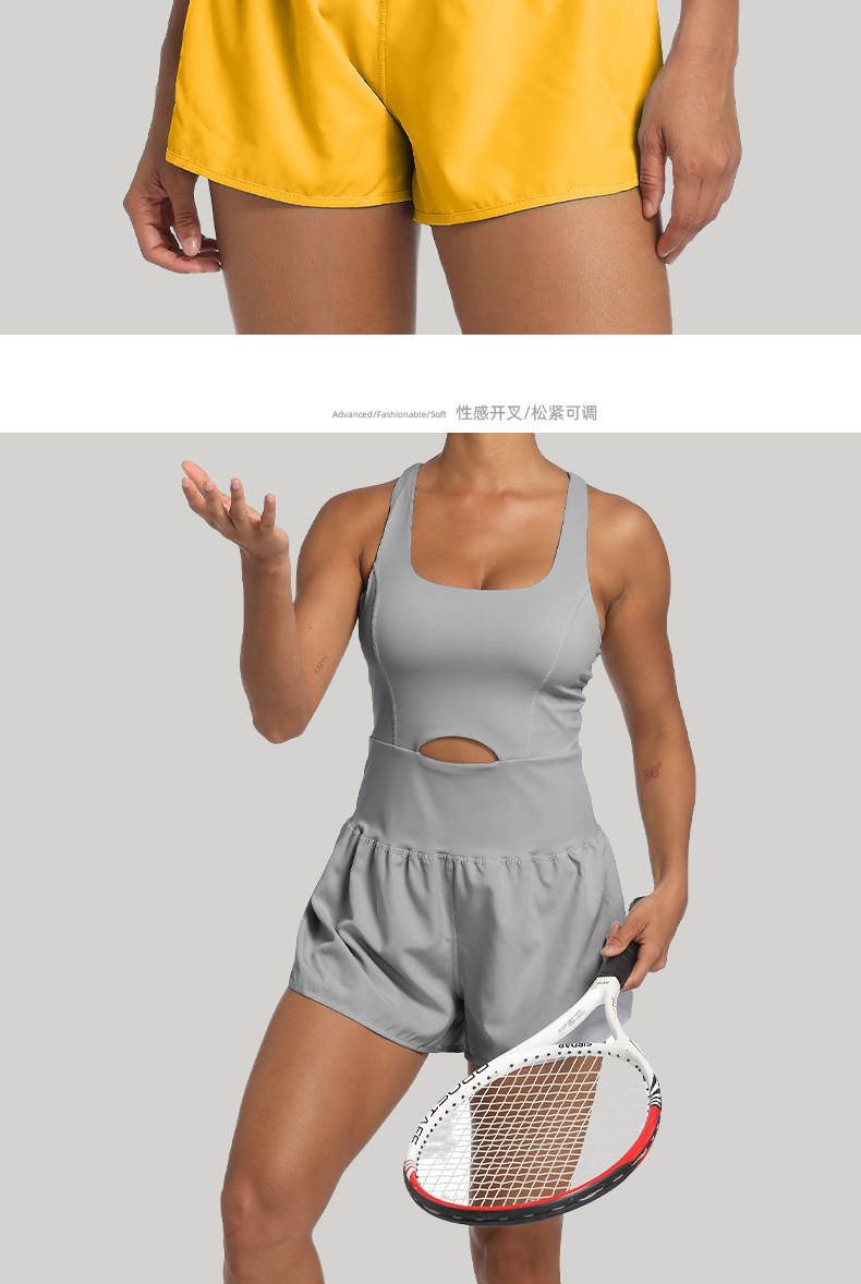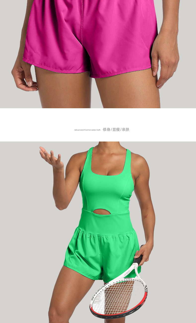 Vestido de una pieza de yoga transfronterizo para mujer, nuevo estilo de verano con solapa a juego, alta elasticidad, secado rápido, ejercicio anti-pérdida, falda de tenis de fitness