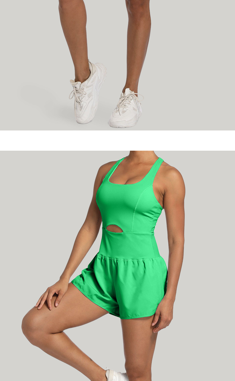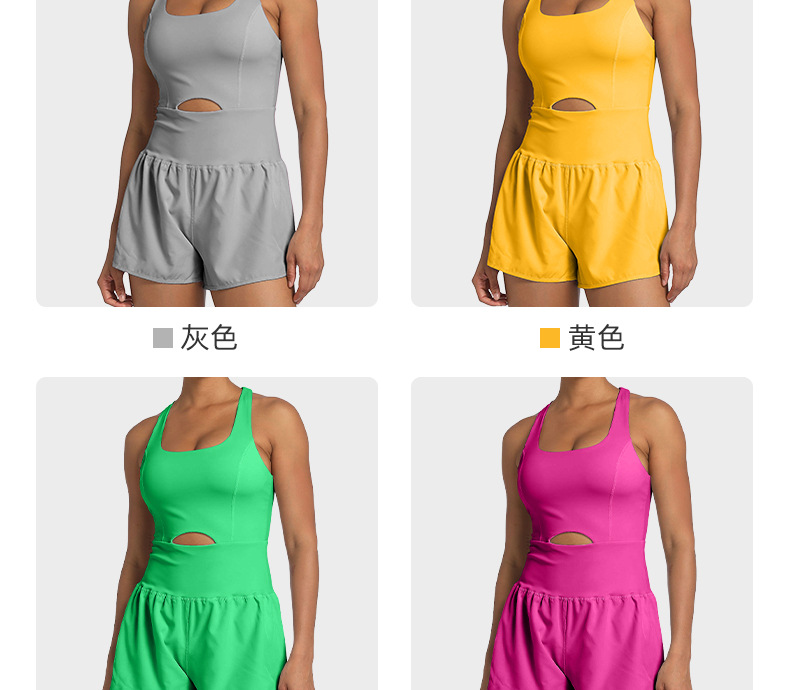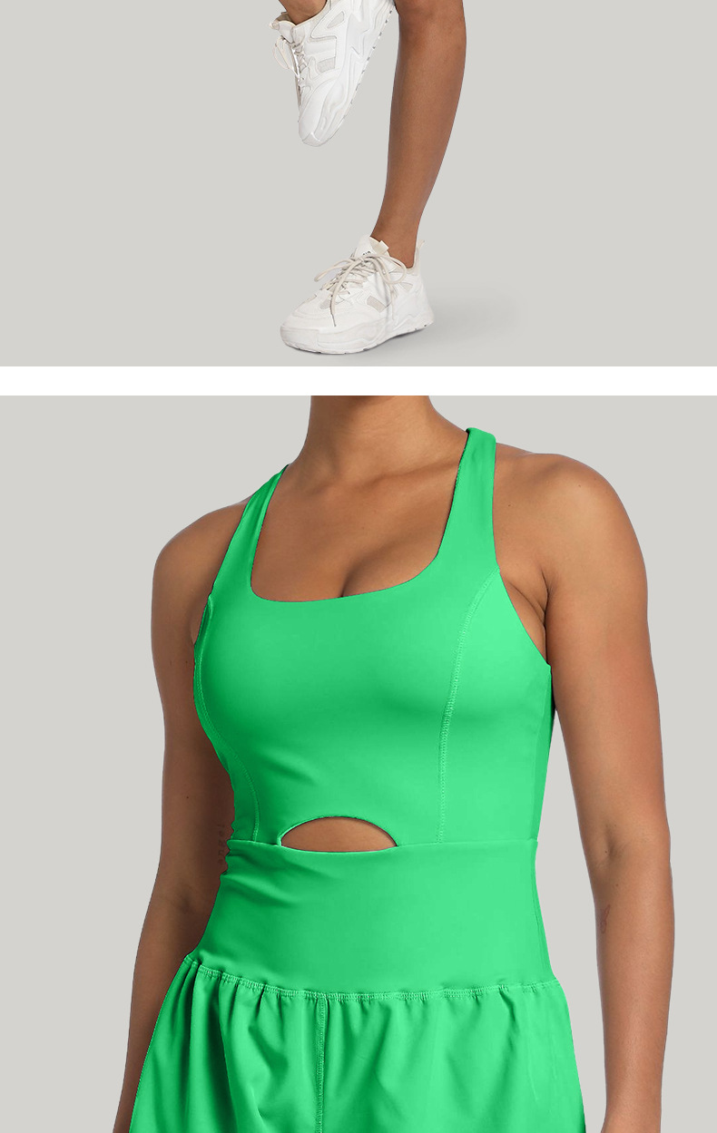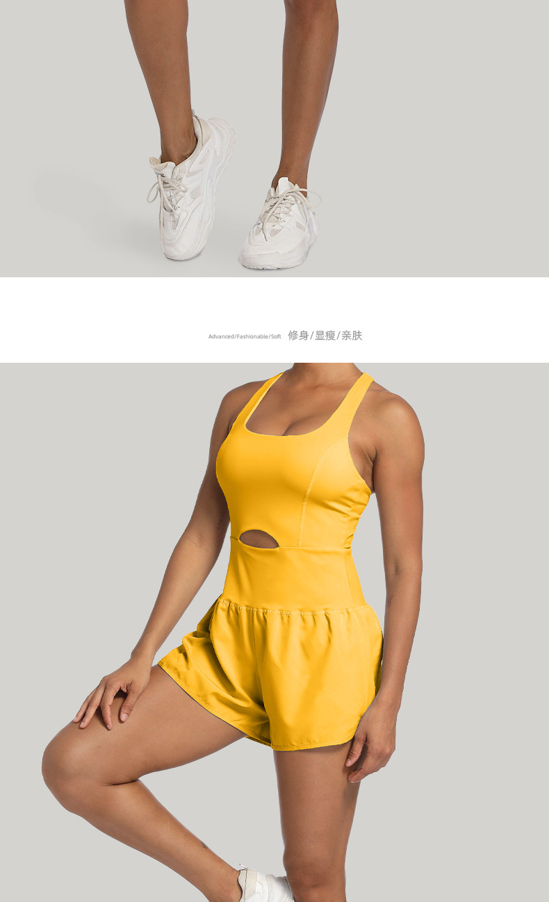 Vestido de una pieza de yoga transfronterizo para mujer, nuevo estilo de verano con solapa a juego, alta elasticidad, secado rápido, ejercicio anti-pérdida, falda de tenis de fitness