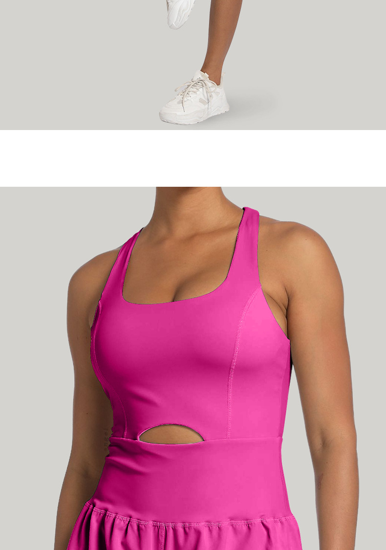 Comercio exterior transfronterizo europeo y americano deportes vestido de una sola pieza de las mujeres de alta elasticidad de secado rápido belleza espalda cruzada anti-exposición falda de tenis con almohadilla en el pecho