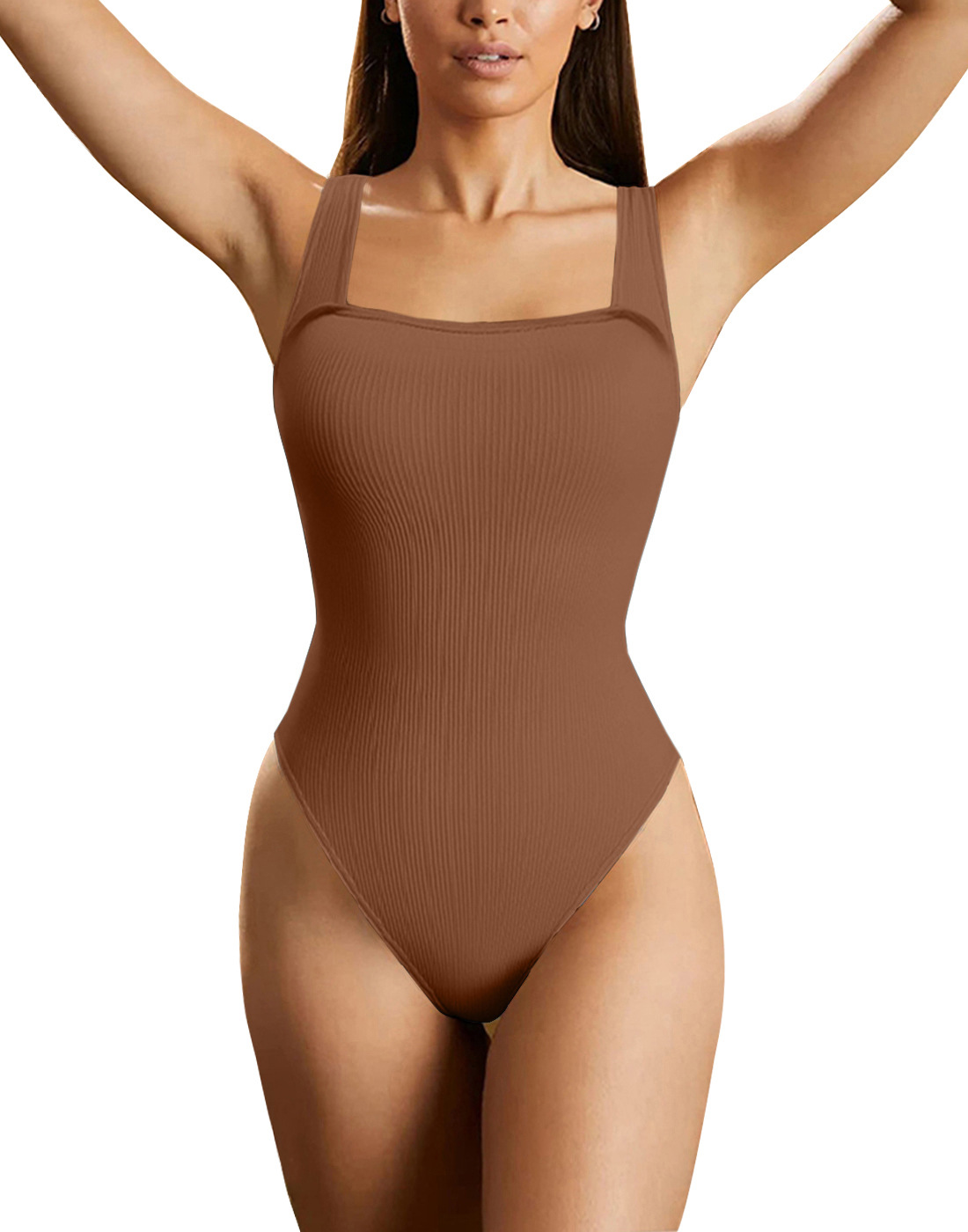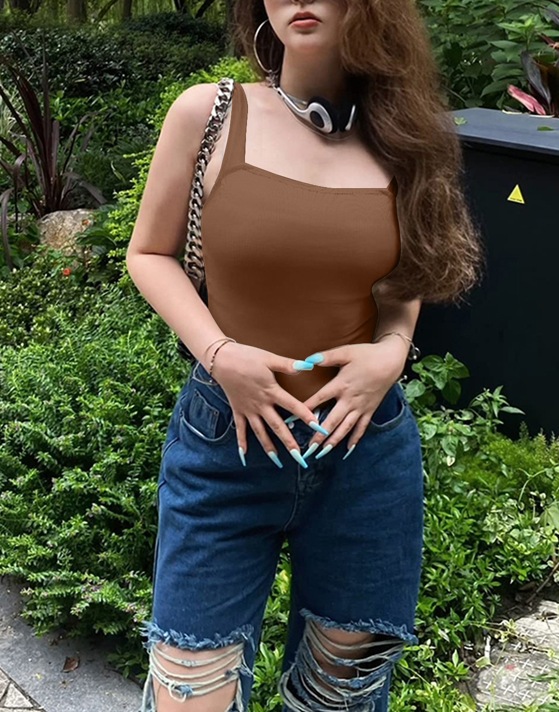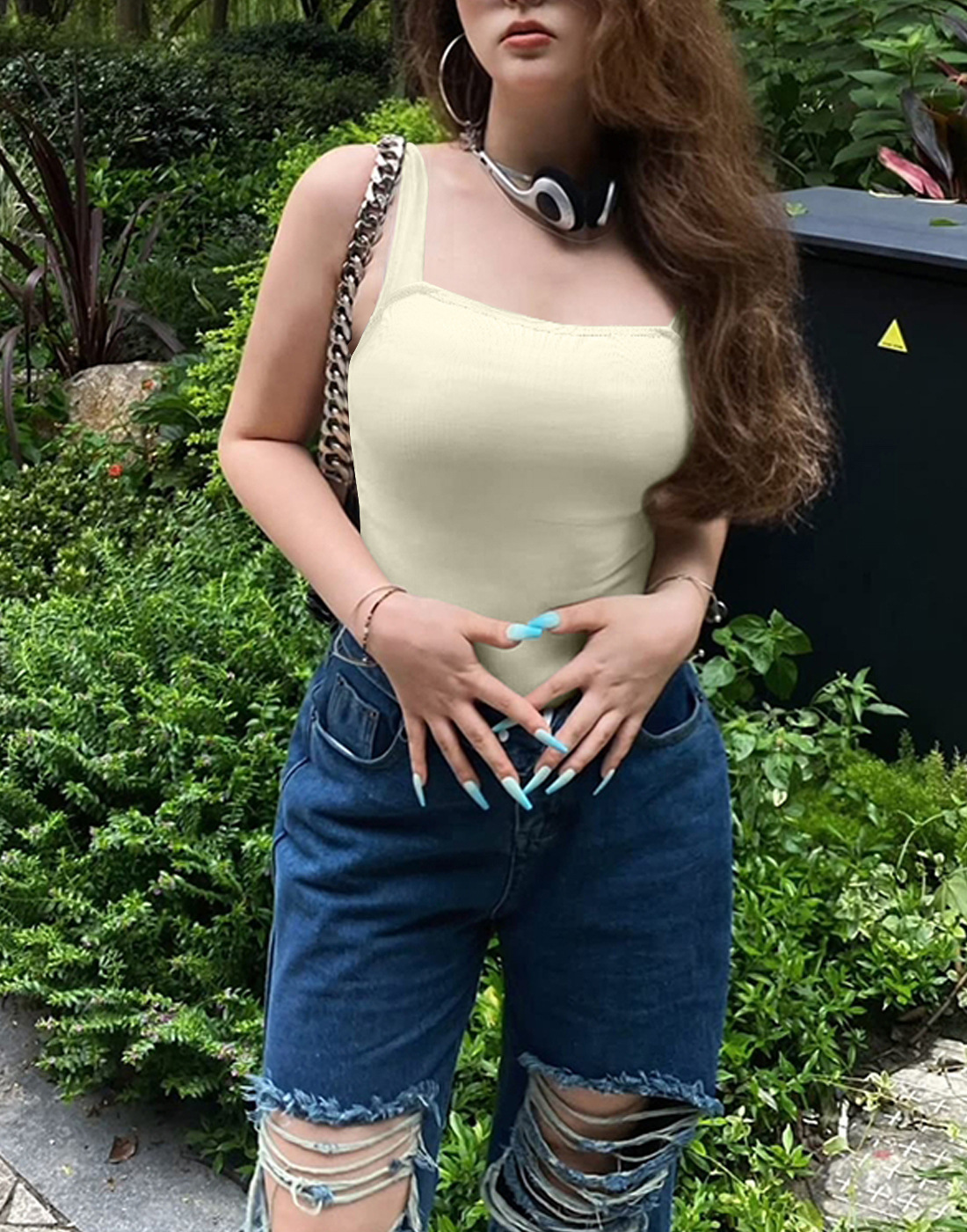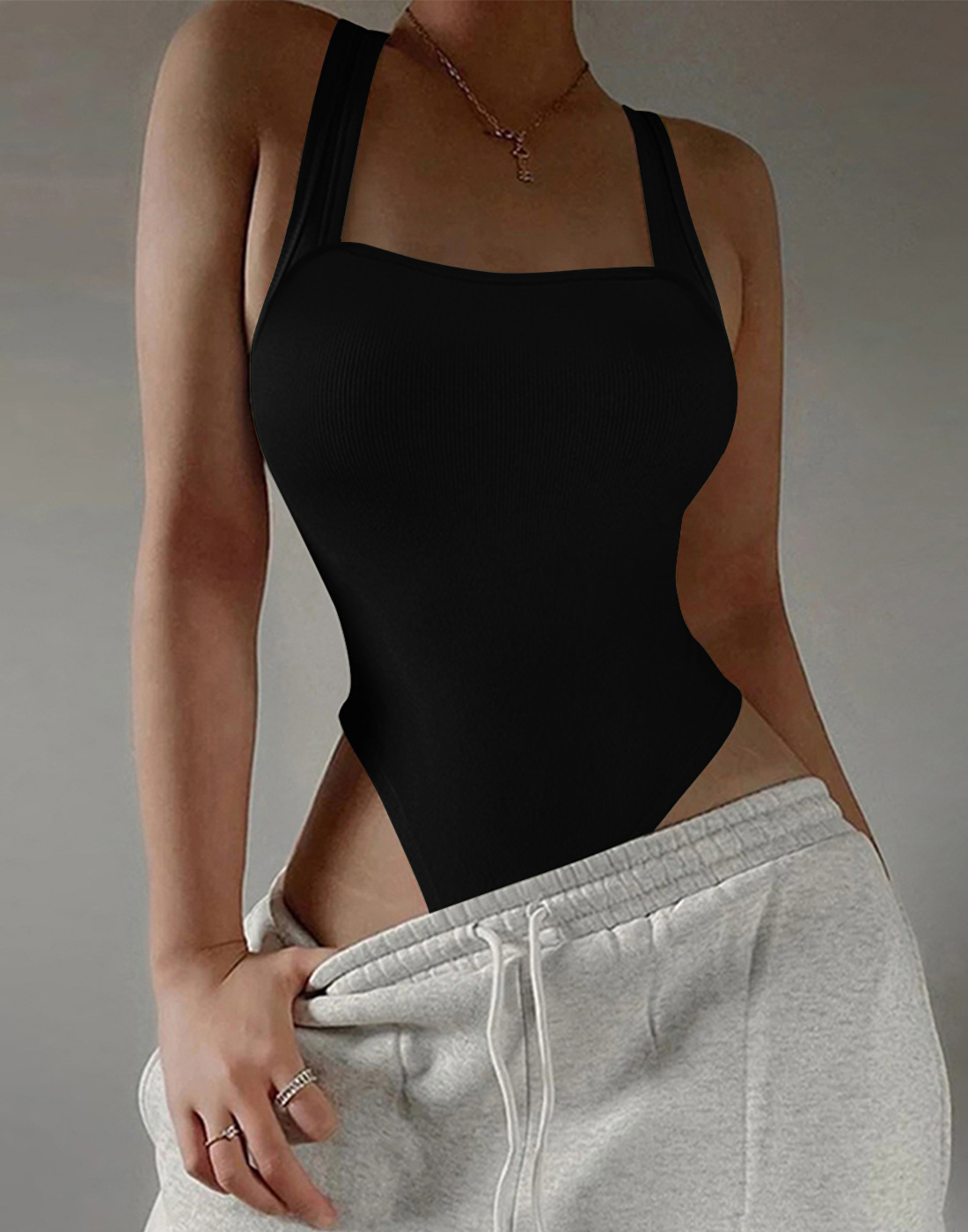 Sin costuras de punto de una sola pieza de las mujeres sexy medias acanaladas sin mangas Chaleco de cuello cuadrado con almohadilla de pecho ropa de entrenamiento de yoga