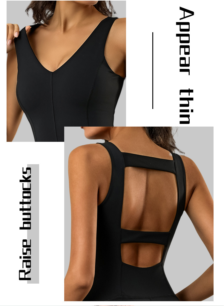 Ropa de fitness de una sola pieza europea y americana con almohadilla en el pecho espalda apretada Pilates entrenamiento yoga mono