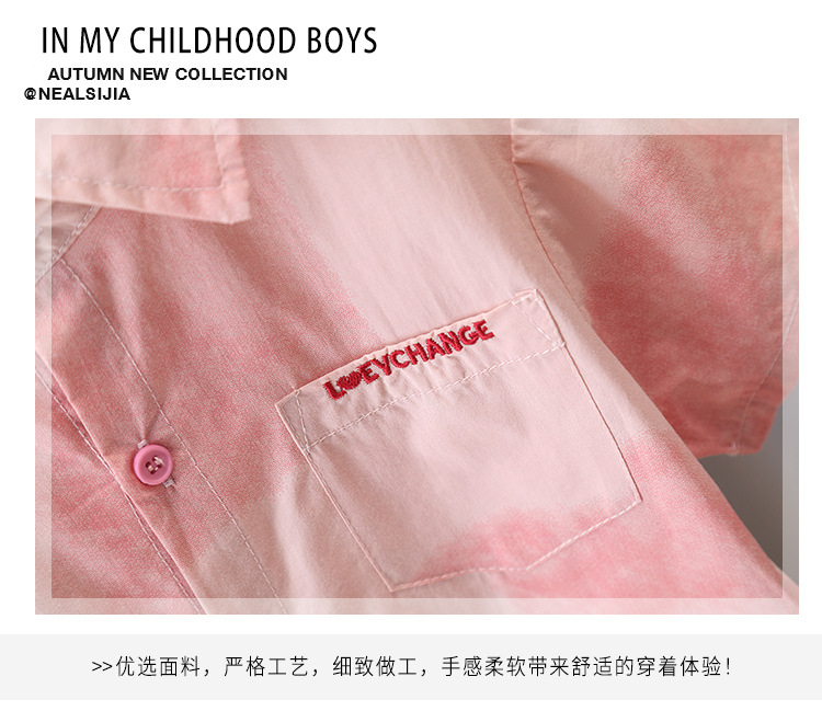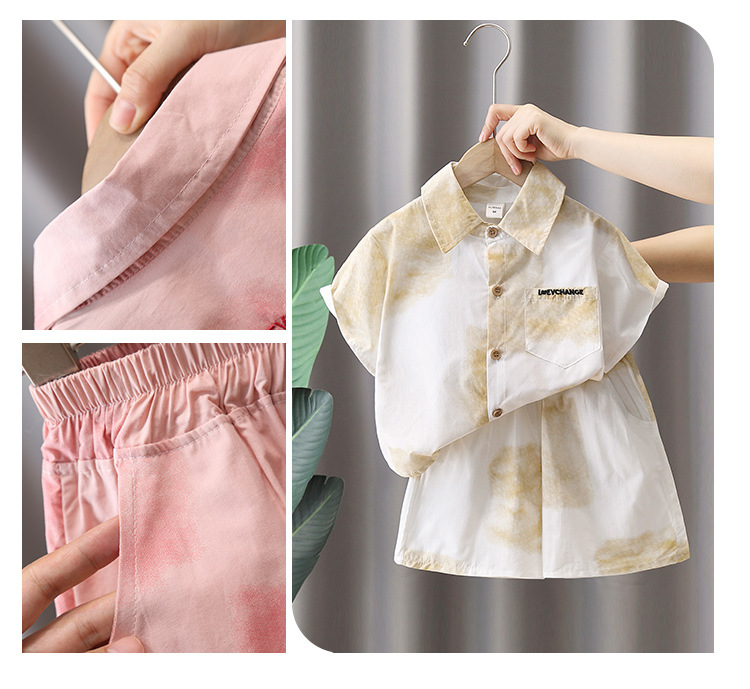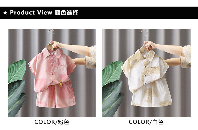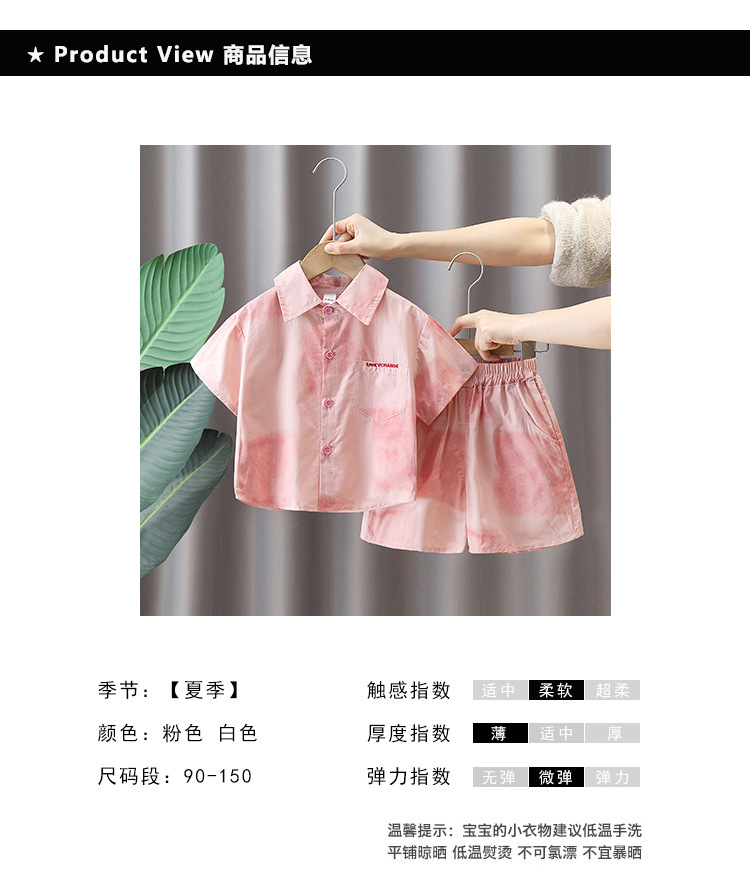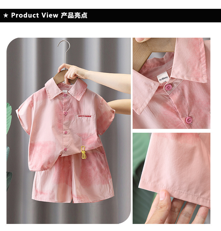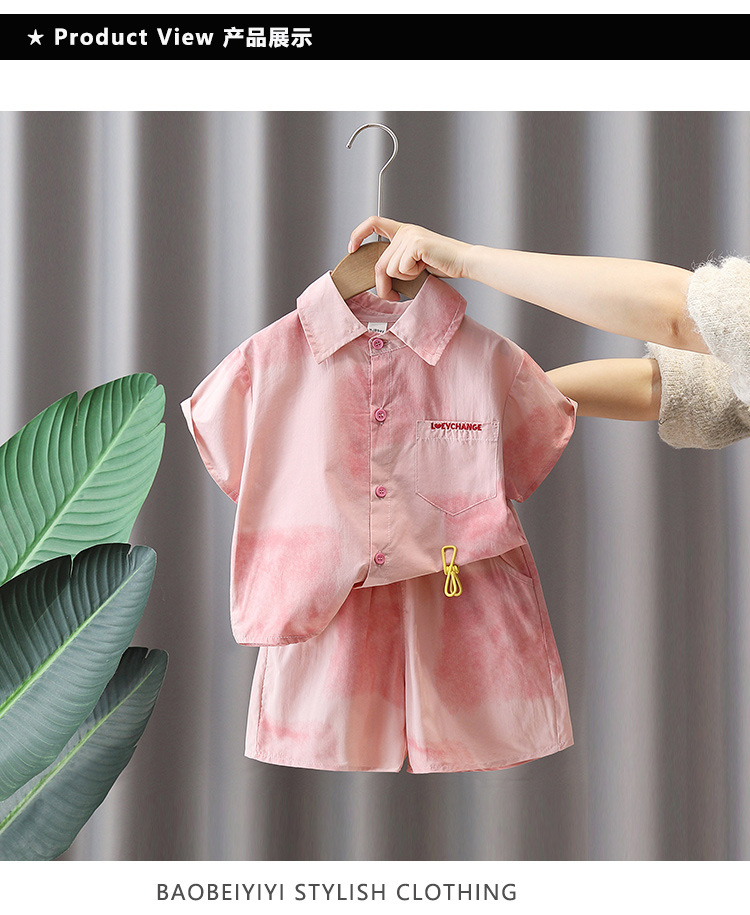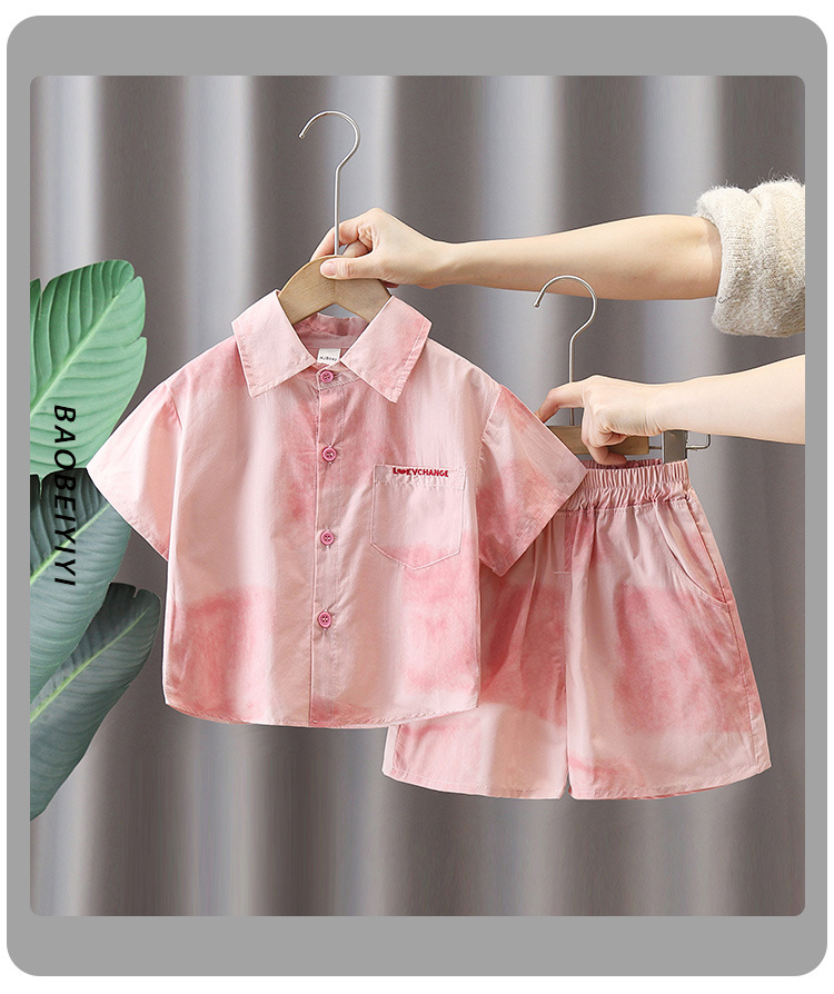7141 Traje de camisa rosa para niños 2025 nuevo verano niño de manga corta bebé verano delgado traje de dos piezas de moda