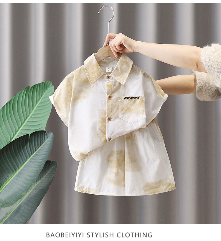 7124 Traje de estilo universitario para niños 2025 verano nuevo estilo para niños camisa de manga corta pantalones cortos traje de dos piezas bebé estilo occidental