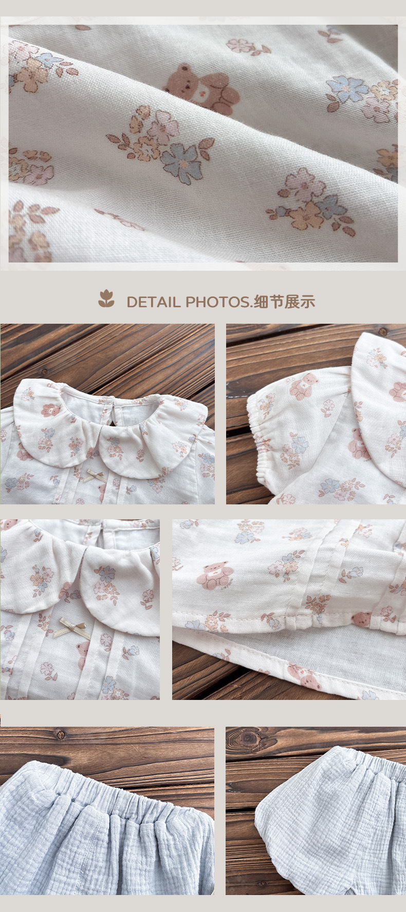 | Colores | Beige [Tops],Azul claro [pantalones cortos] |