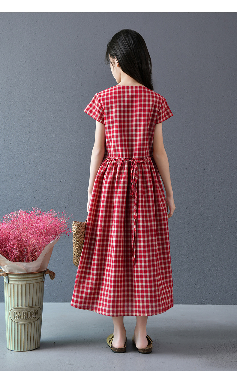 | Número de artículo | Falda con botones de línea recta a cuadros rojos 8824 |