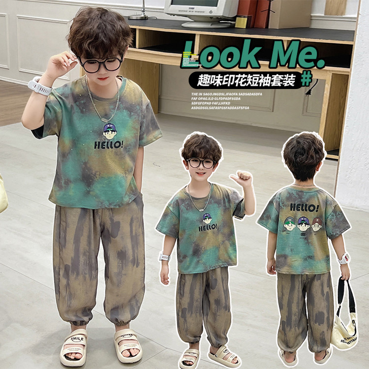 | Colores | Traje de manga corta estampado para niños,Traje de manga corta con cabeza estampada |