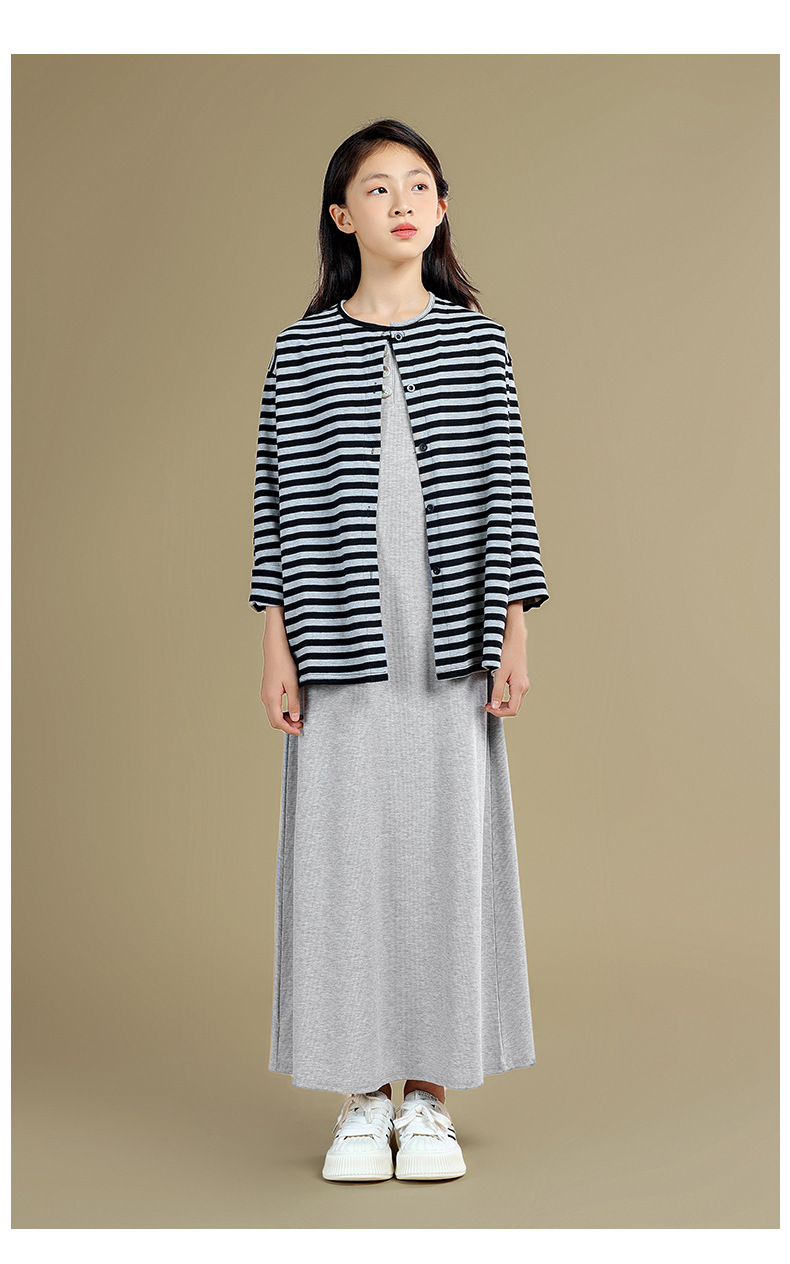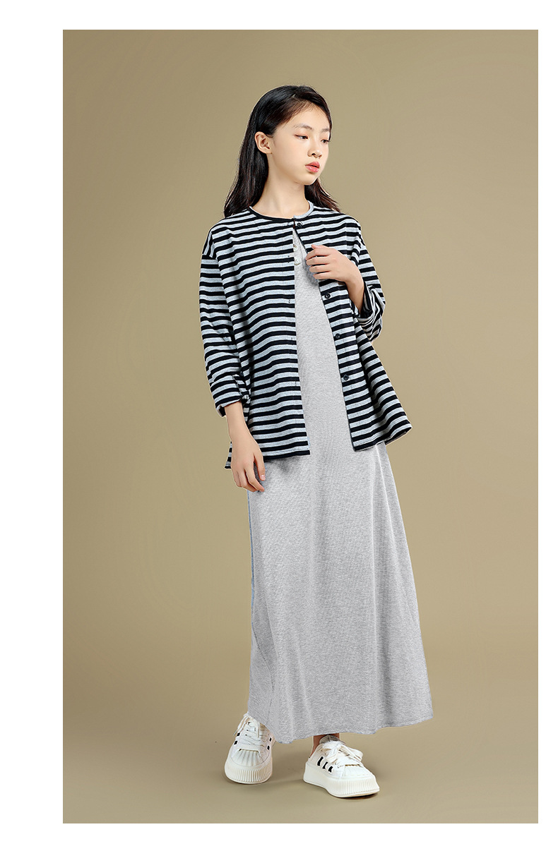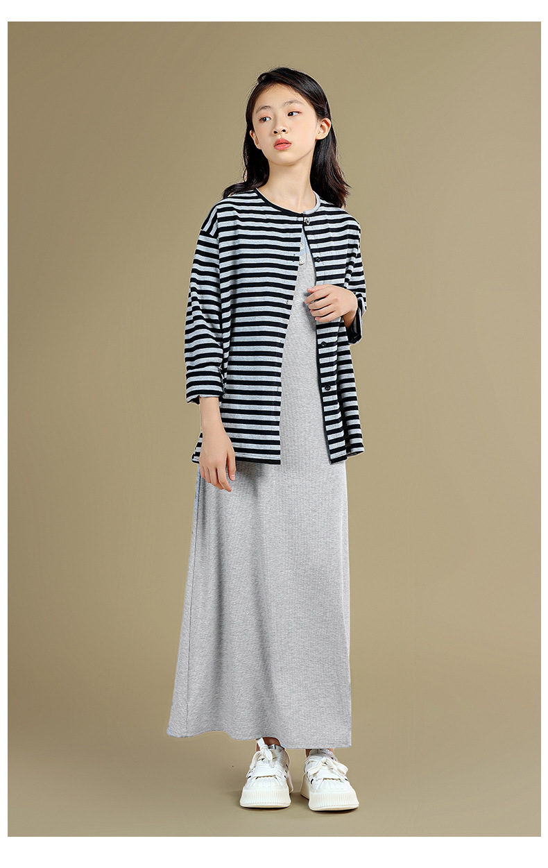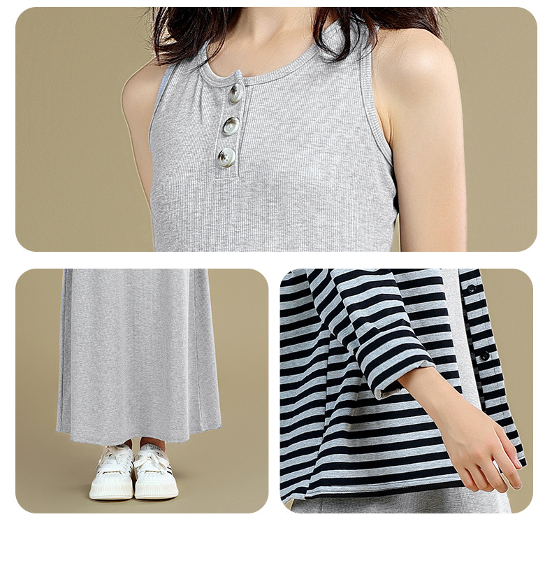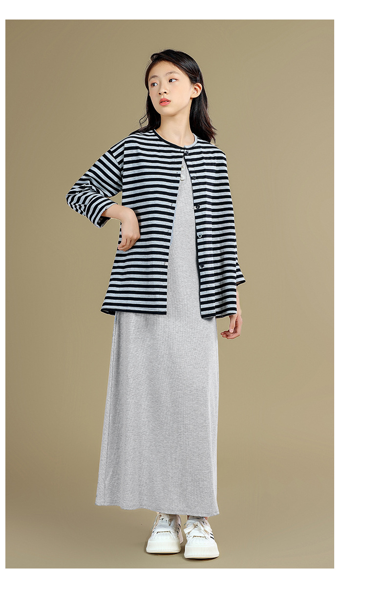 | Color | Falda de chaleco gris claro A413,Cardigan recto con botón a rayas A419 |